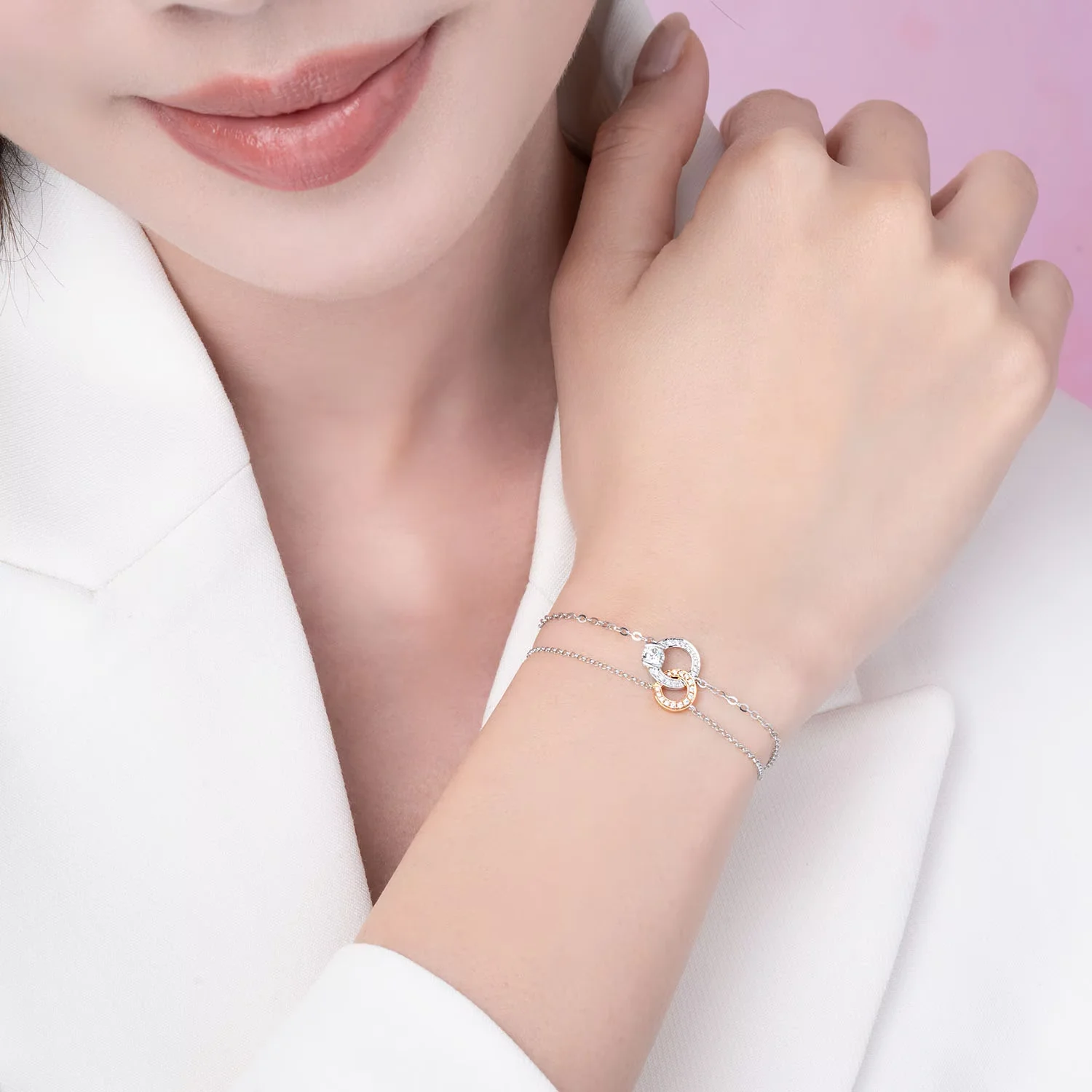 品名: 18K红白分金钻石手链