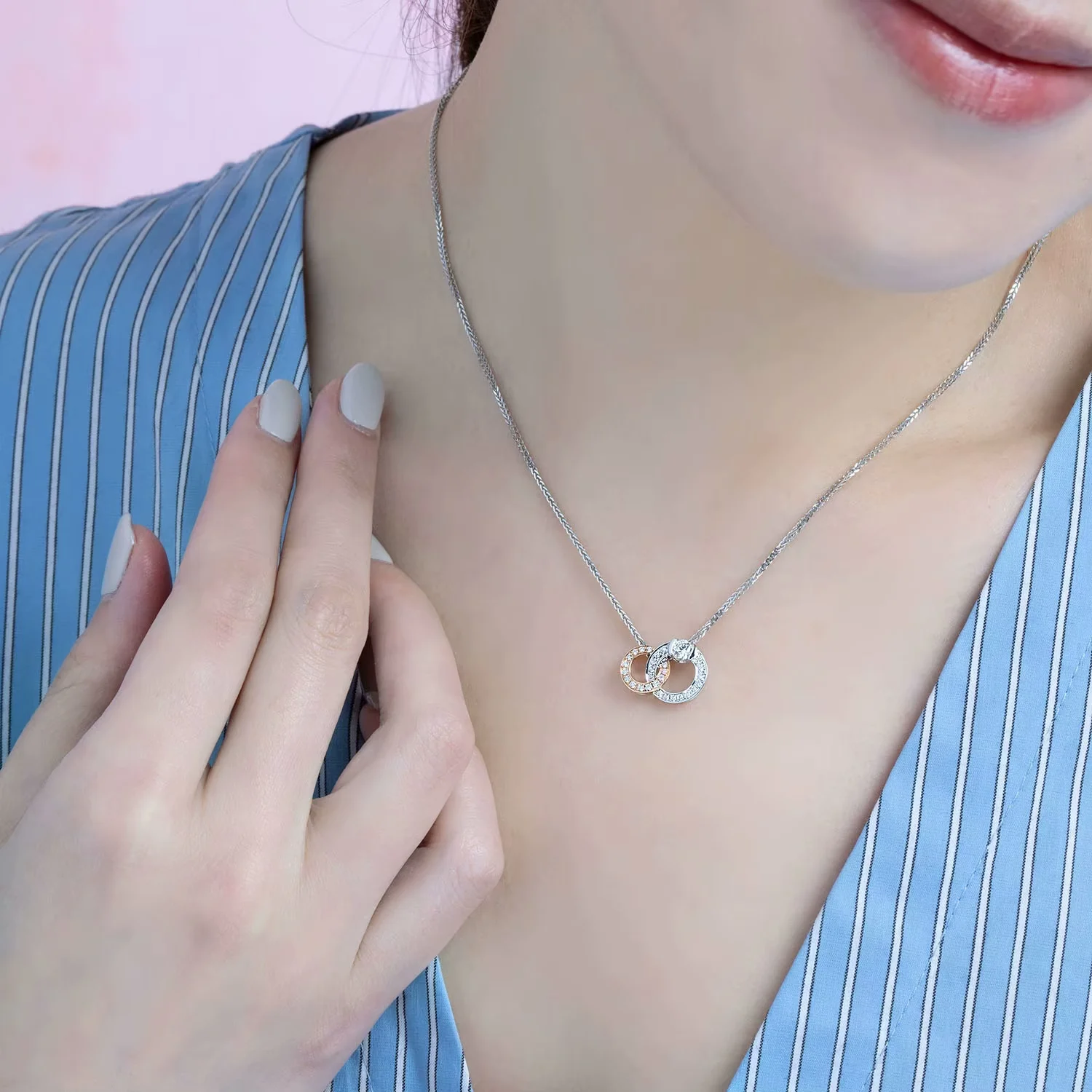 e》系列18K红白金钻石吊坠(不含配链)
