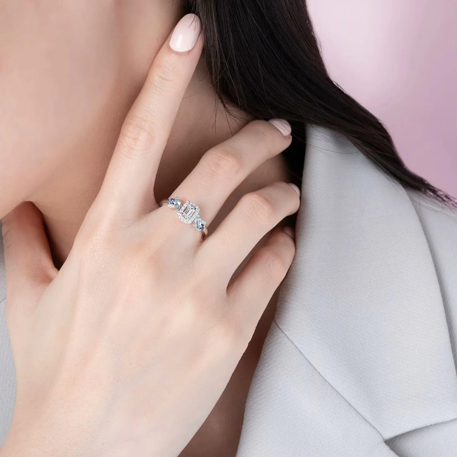 ASHOKADiamond《Breeze》18K白金蓝宝石/海蓝宝拼镶钻石戒指 手寸14 号