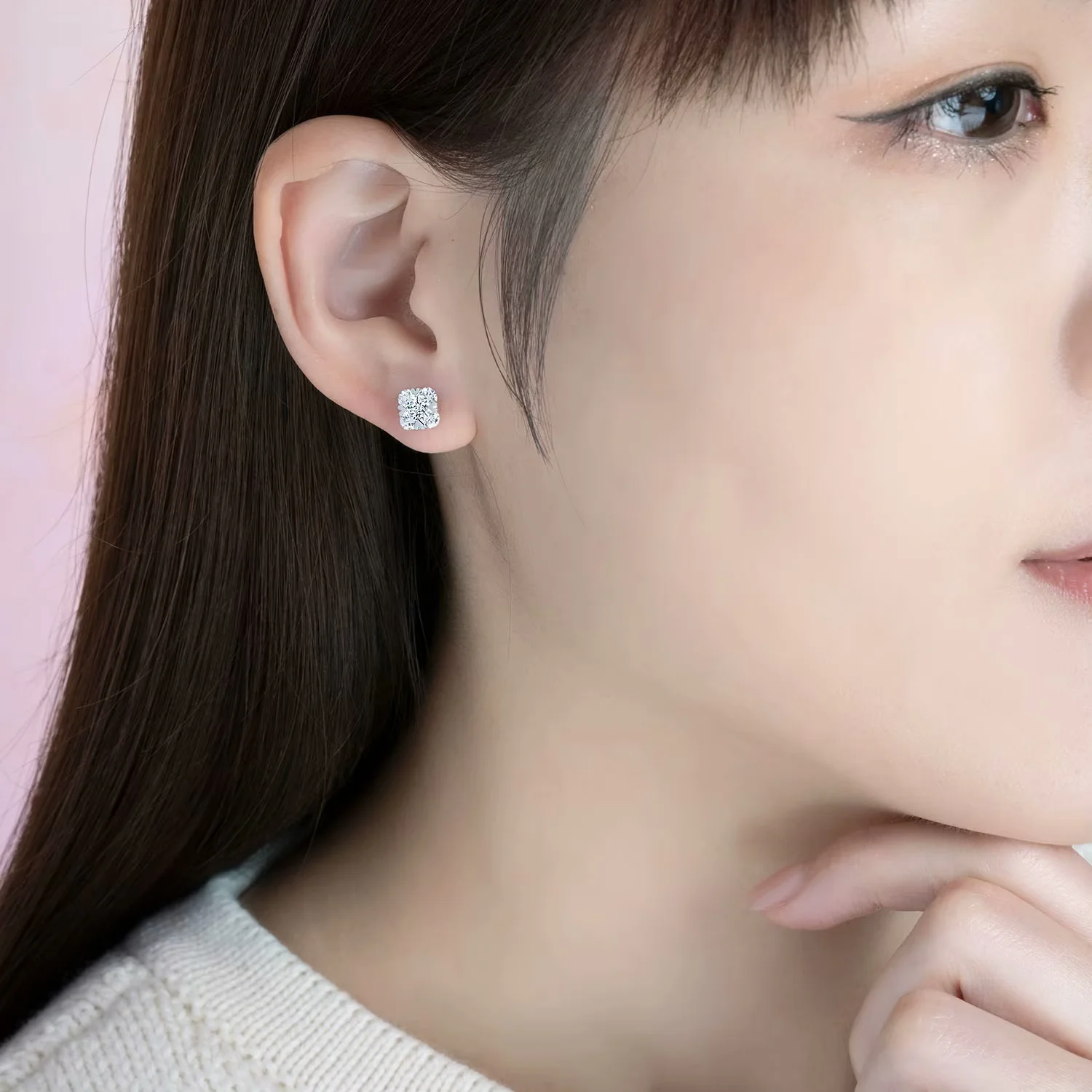 18K白金群镶款钻石耳钉
