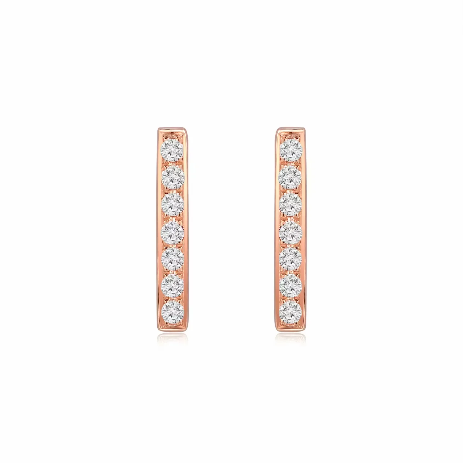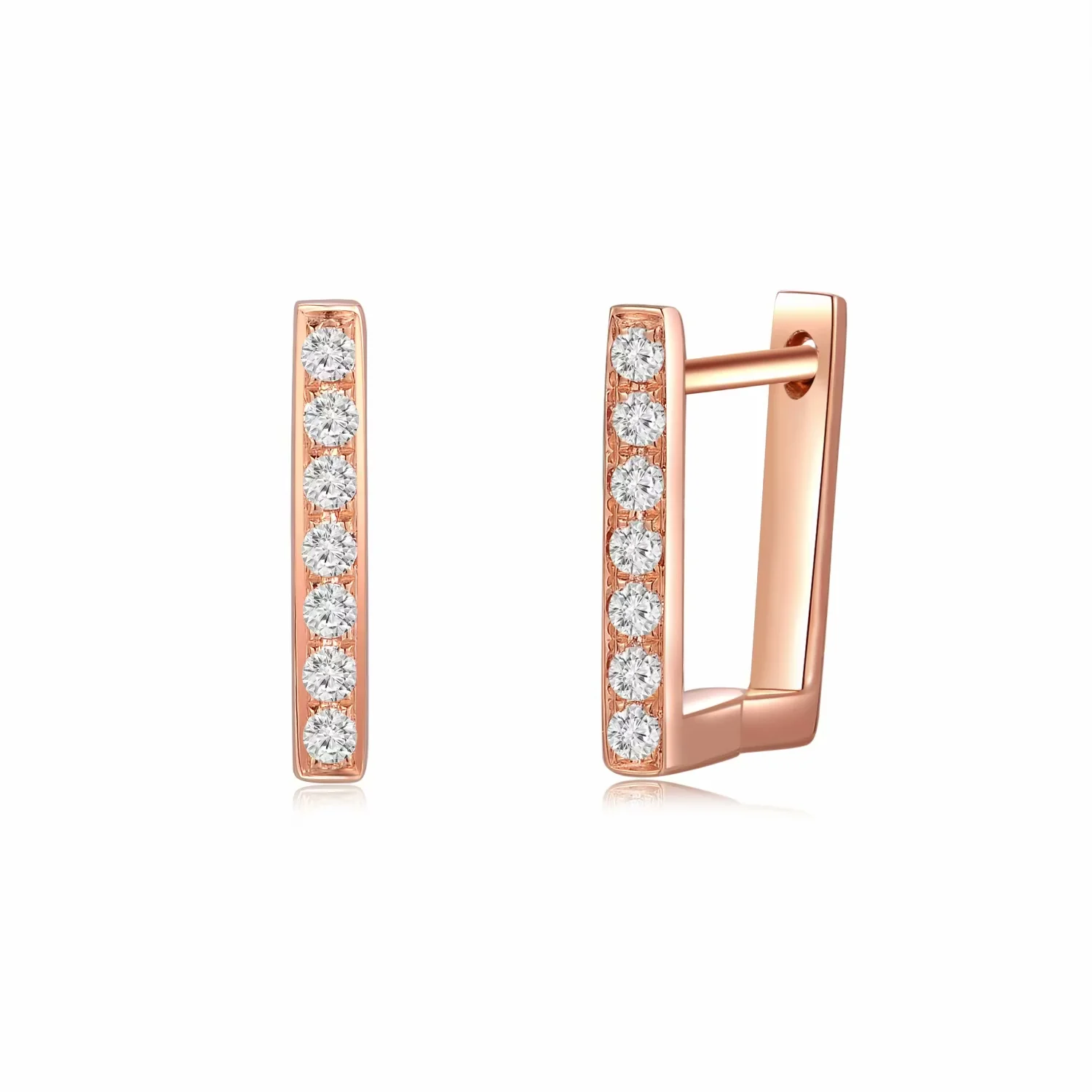 18K白金玫瑰金圈式通勤款钻石耳钉 简约大方
