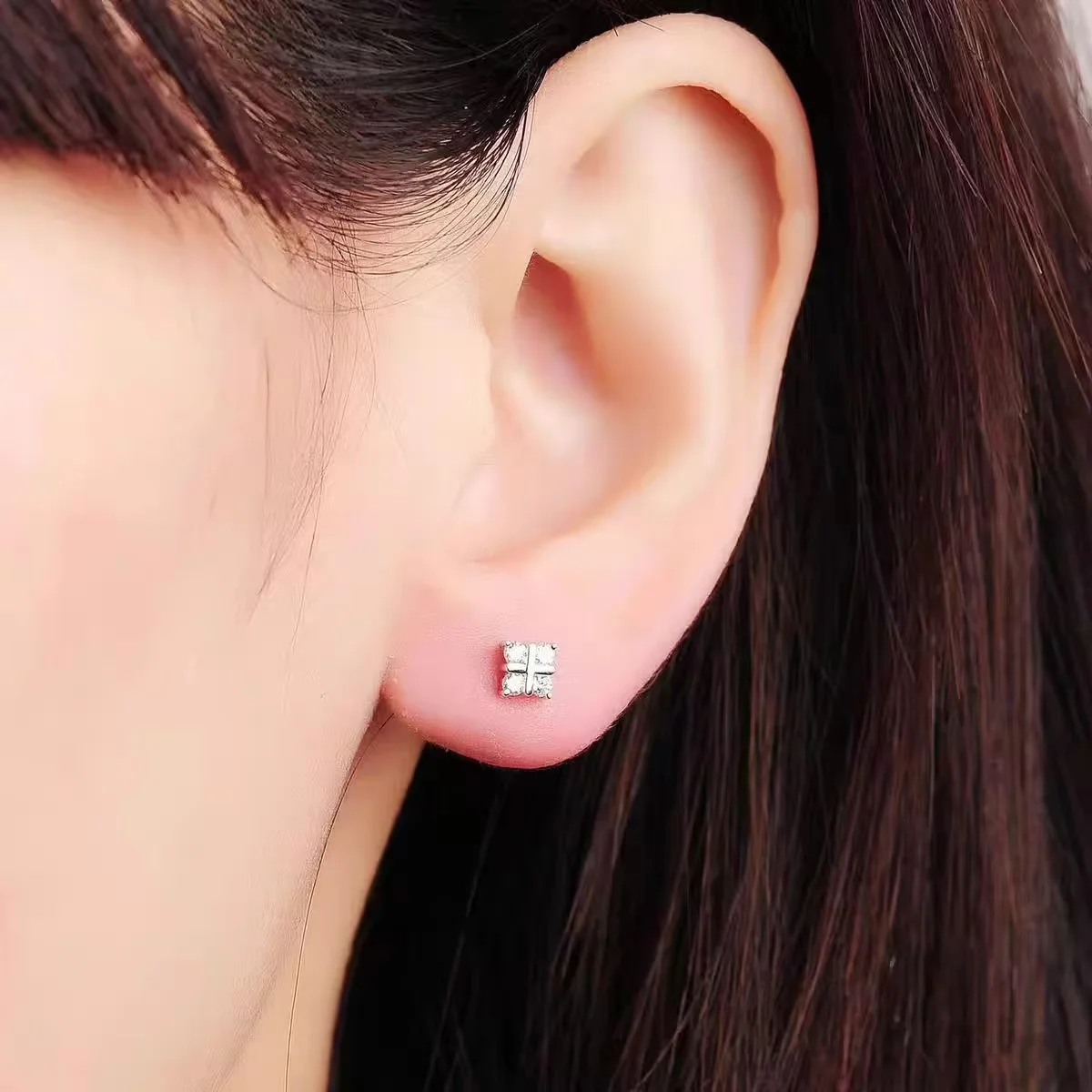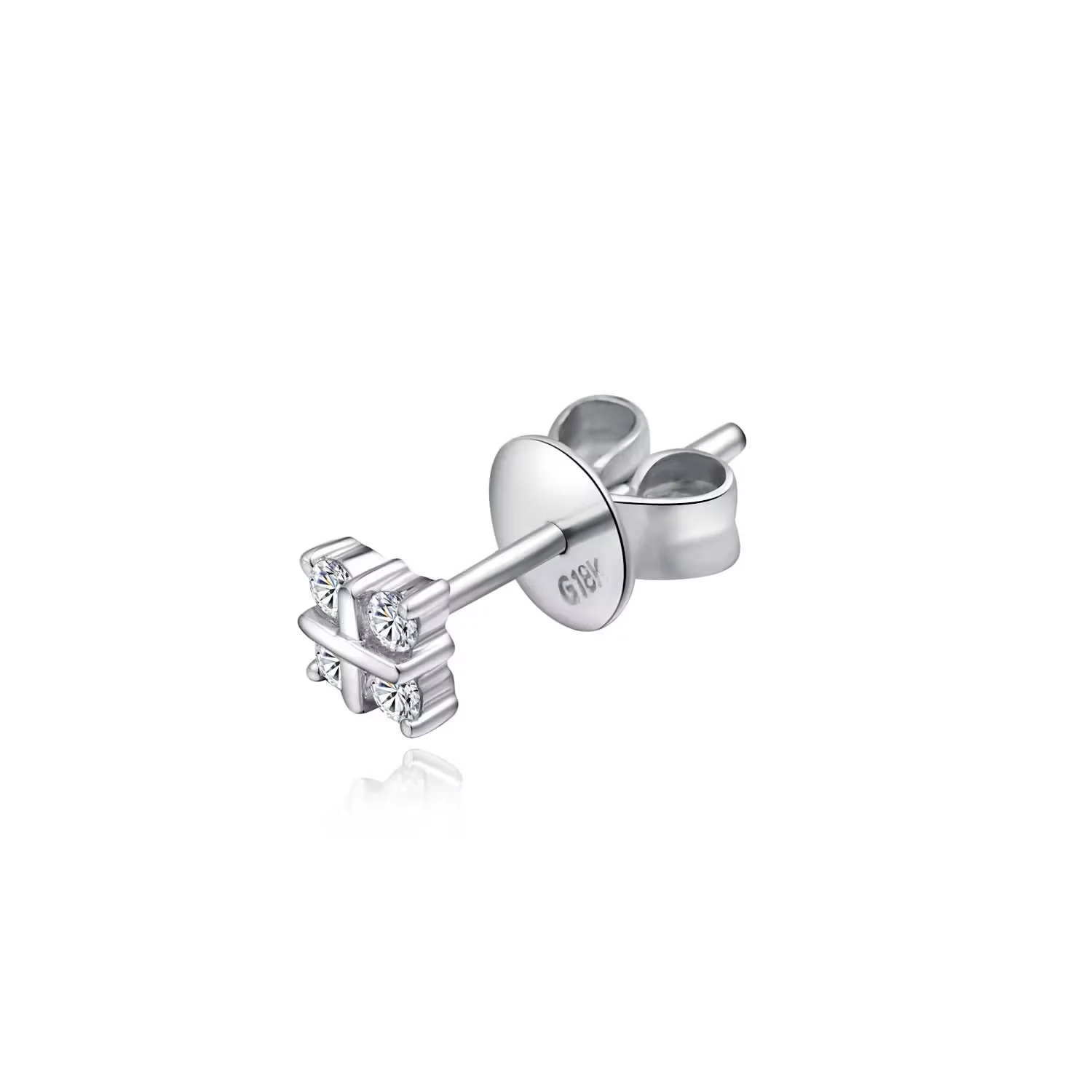 18K白金田字形钻石单边耳钉(单只)