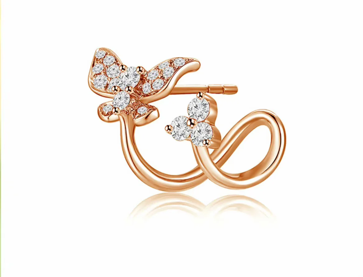 蝶恋芳菲系列18K玫瑰金 单边钻石耳钉 蝴蝶款