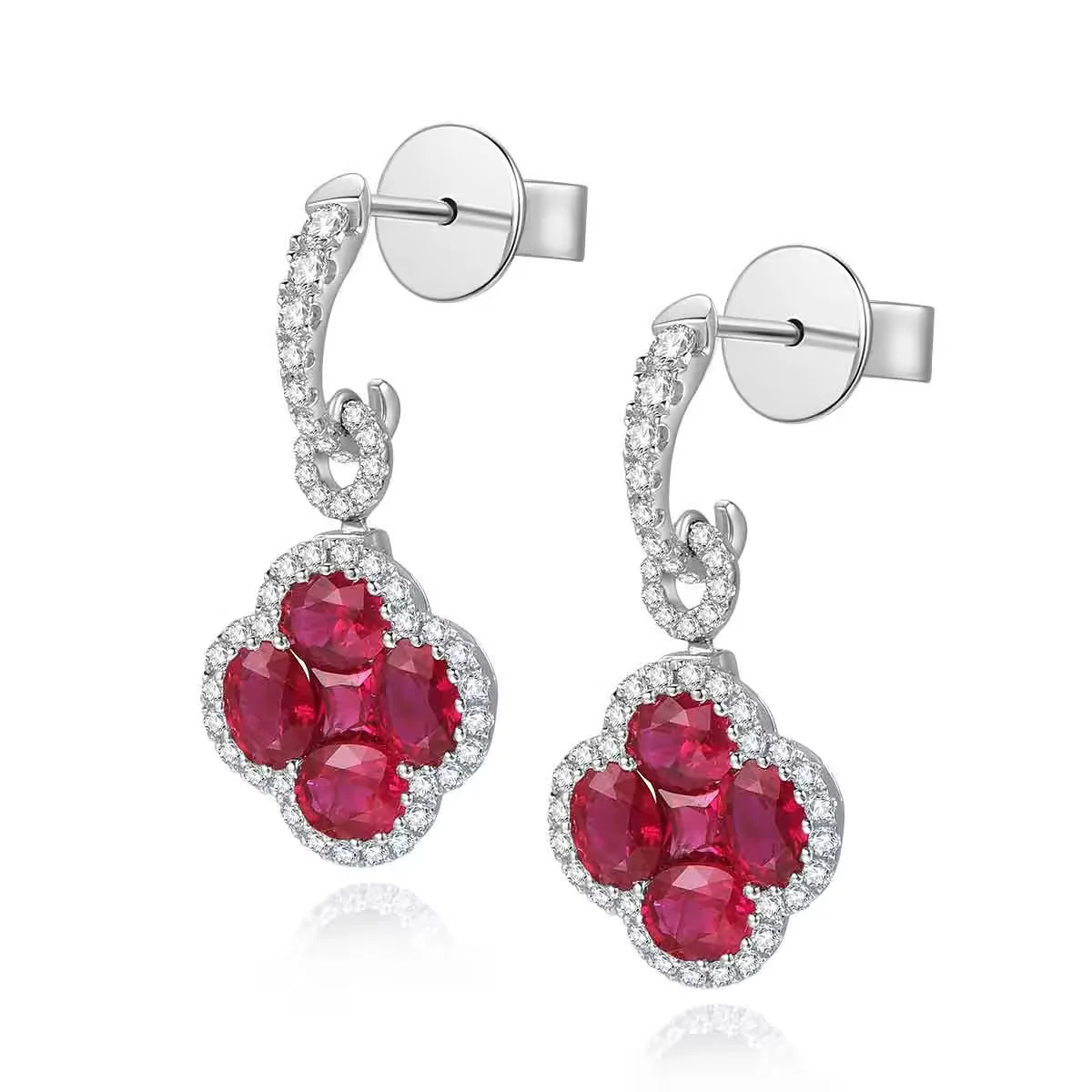 花之物语系列 18K白金红宝石拼镶钻石耳环