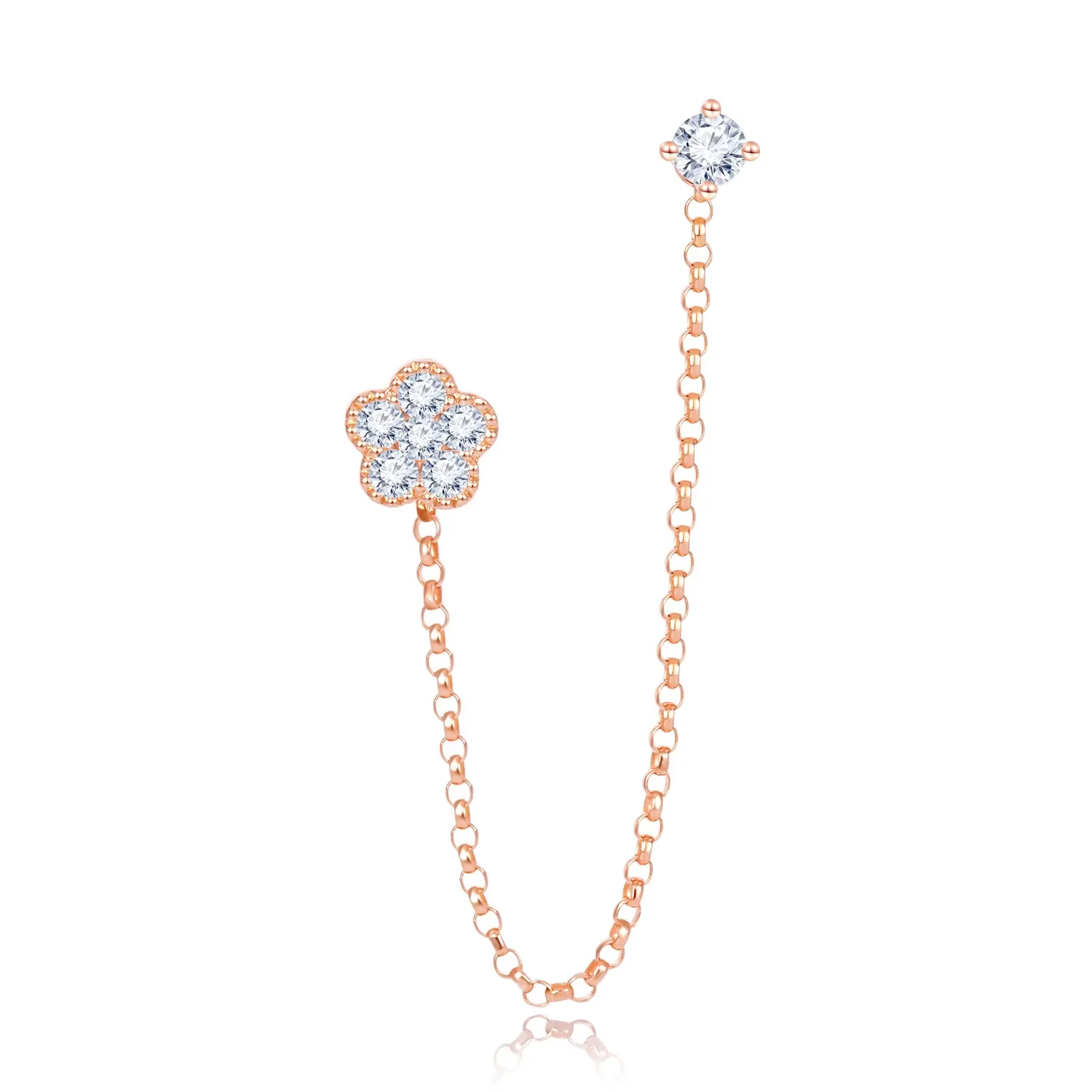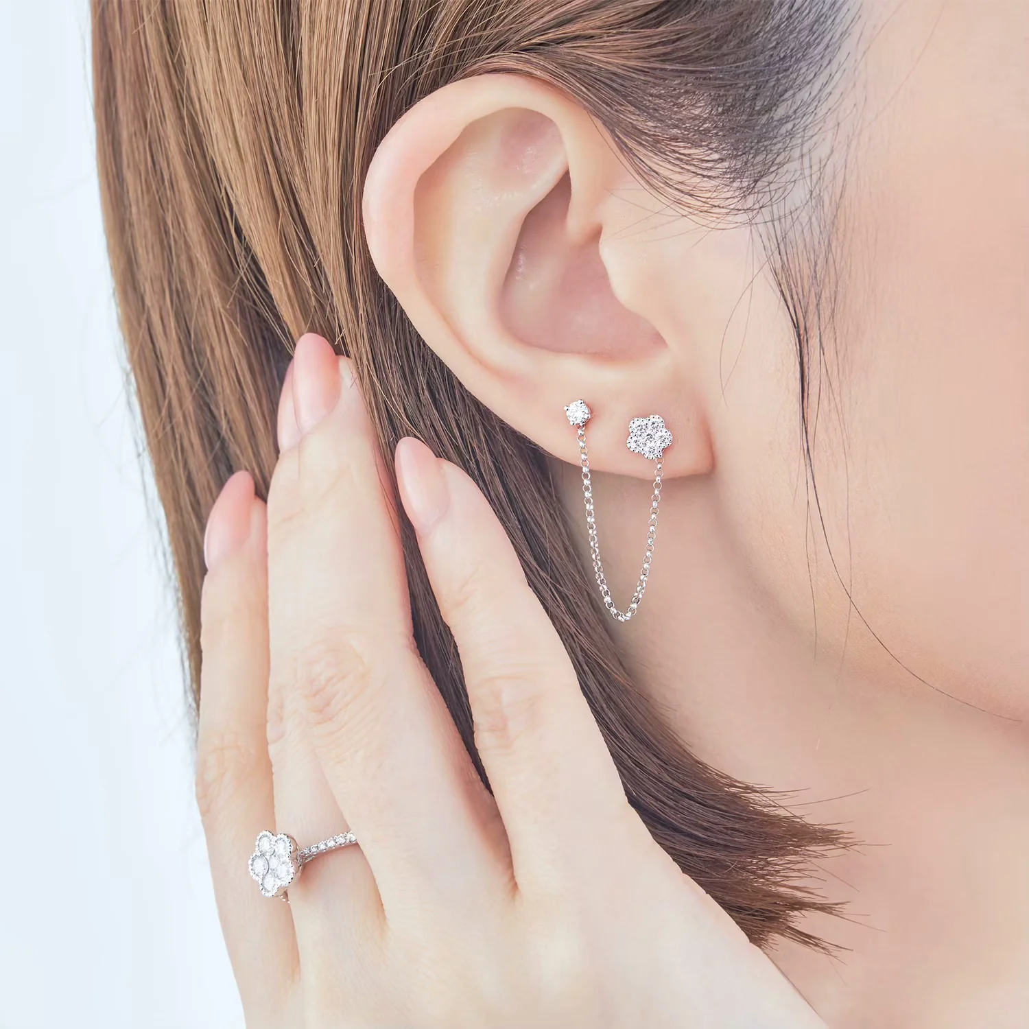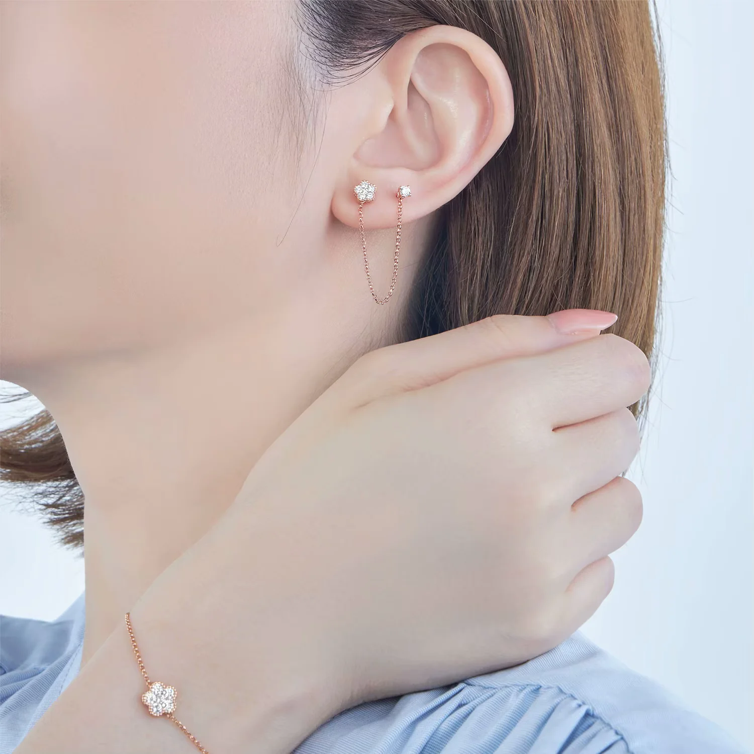 18K白金钻石单边耳钉(双耳洞佩戴一款两戴)玫瑰金可订做
