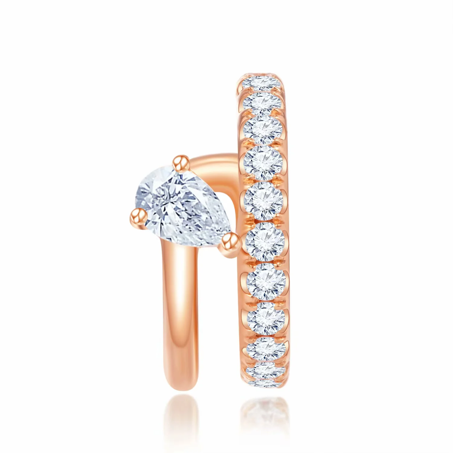 18K玫瑰金 单颗粒梨形拼镶钻石单边耳夹(无需耳洞)