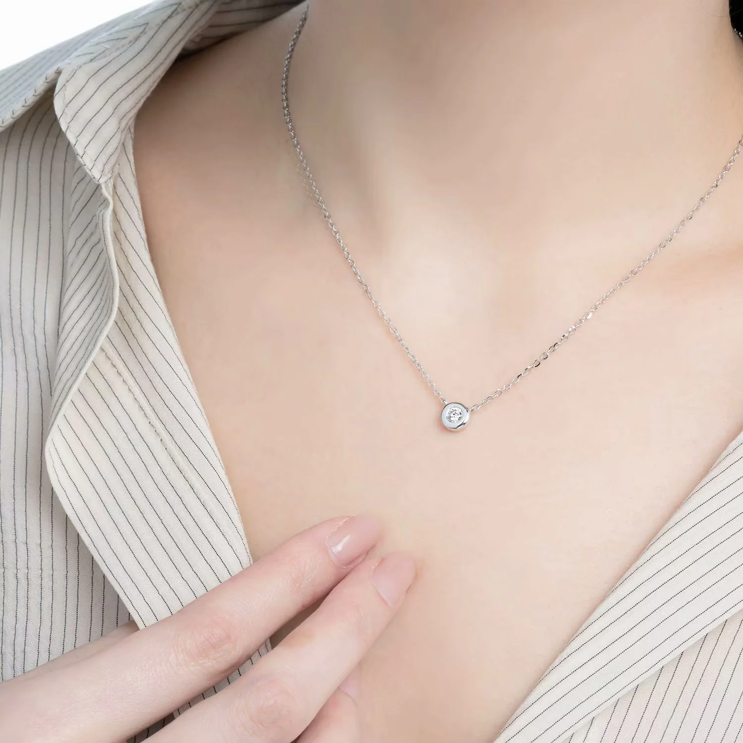 18K白金钻石泡泡项链单颗粒18分