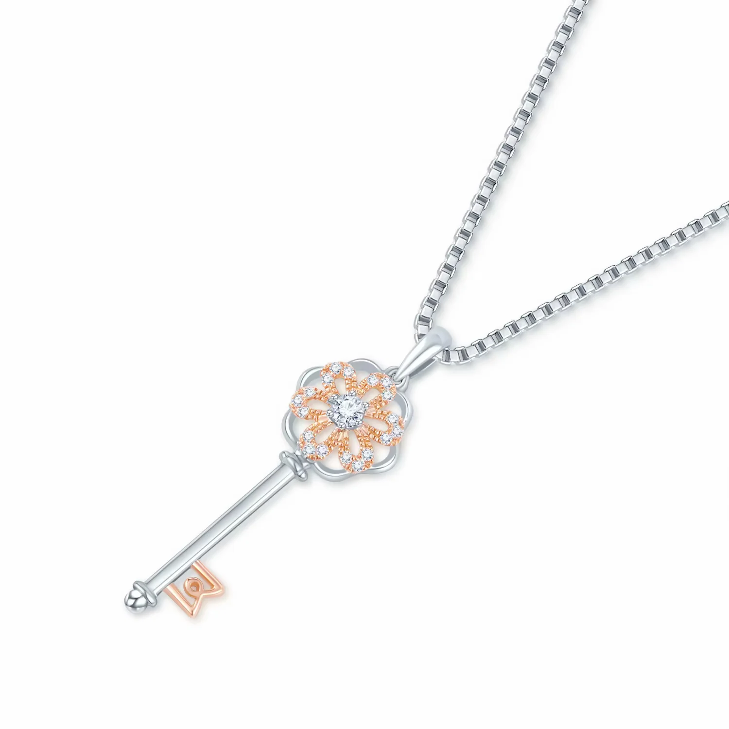 18K红白金钥匙款钻石吊坠(不含配链)