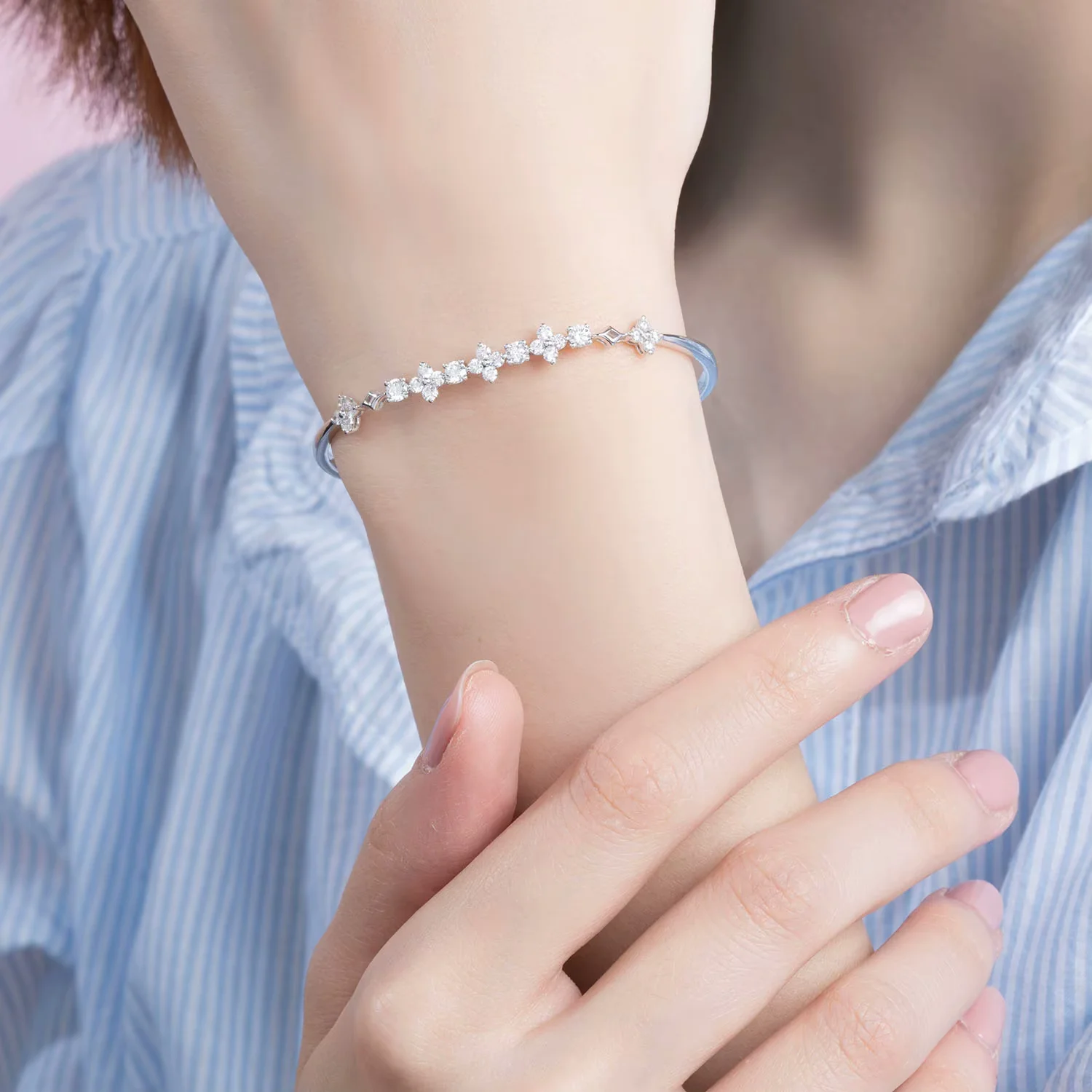 繁花系列18K白金钻石手镯手寸55MM