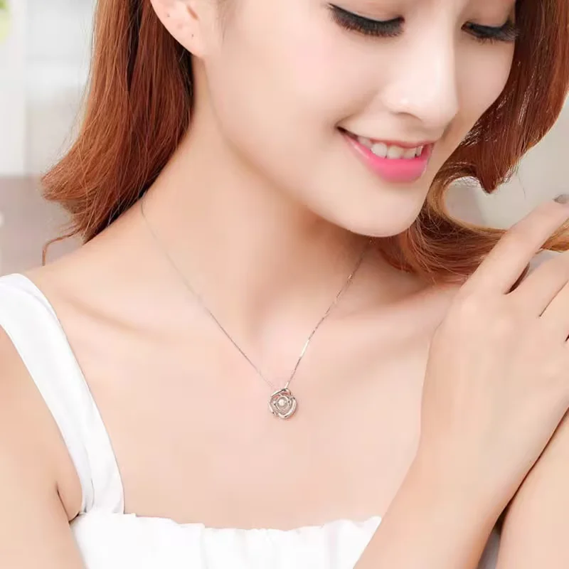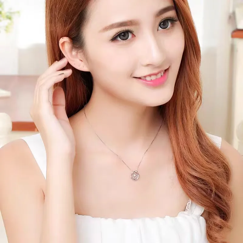 18K白金“玫瑰花”单颗粒钻石吊坠(不含配链)