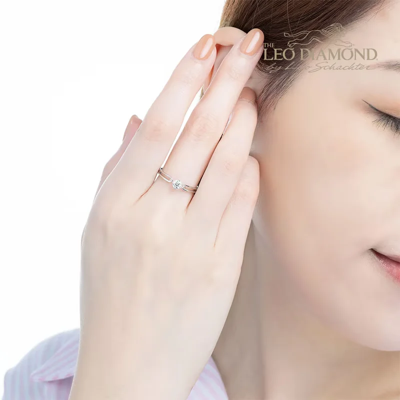 The Leo Diamond 无限爱 18K白金单颗粒求婚结婚钻石戒指
