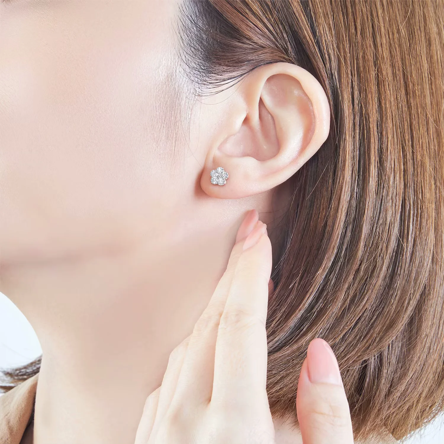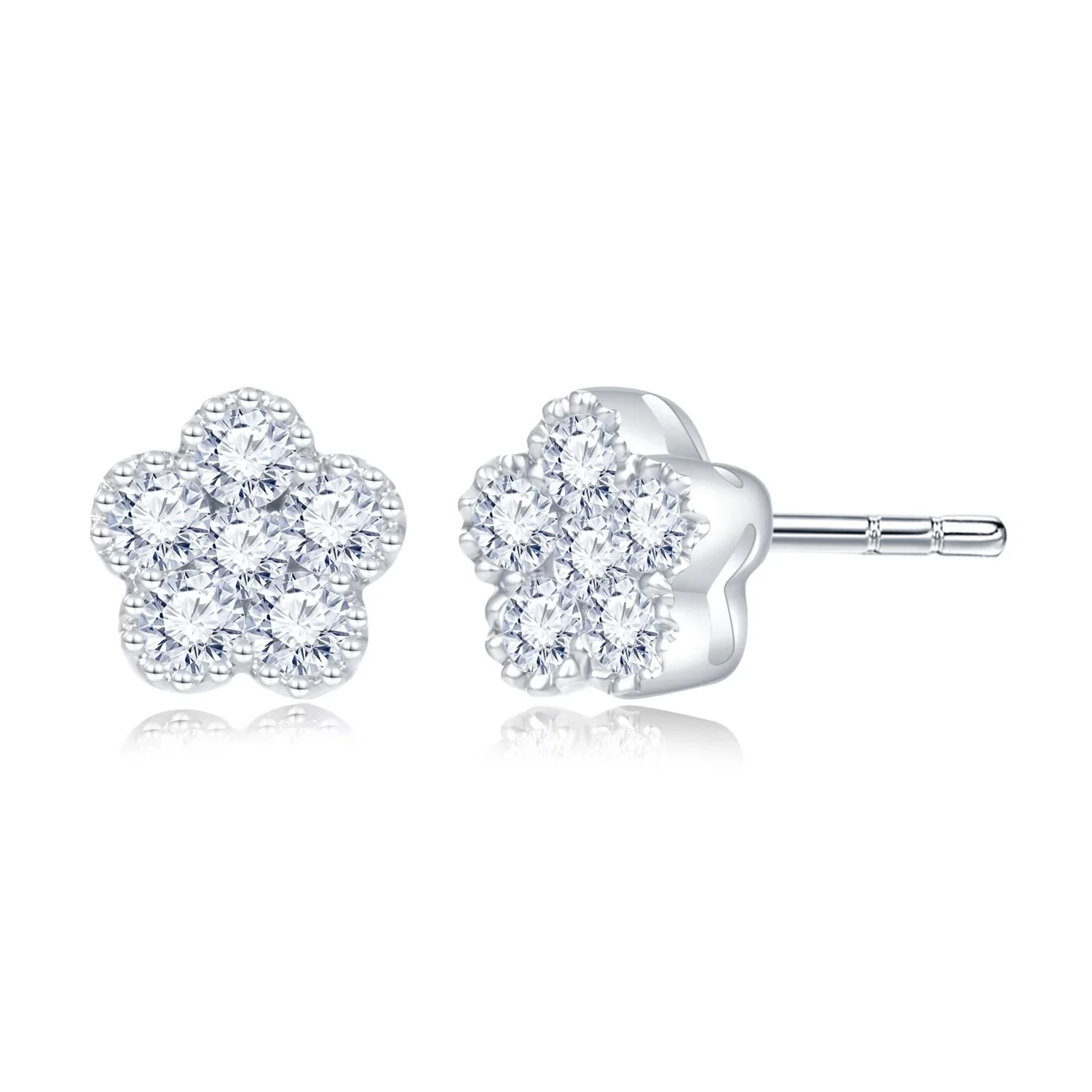 18K白金钻石单边耳钉 五瓣花钻石耳钉一对 温柔娴静