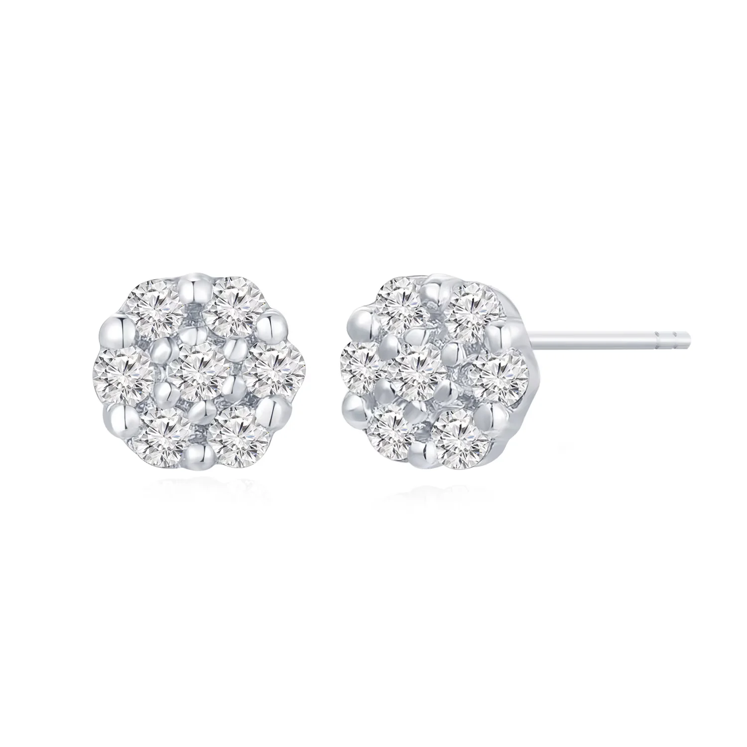 18K白金群镶设计雪花款钻石耳钉