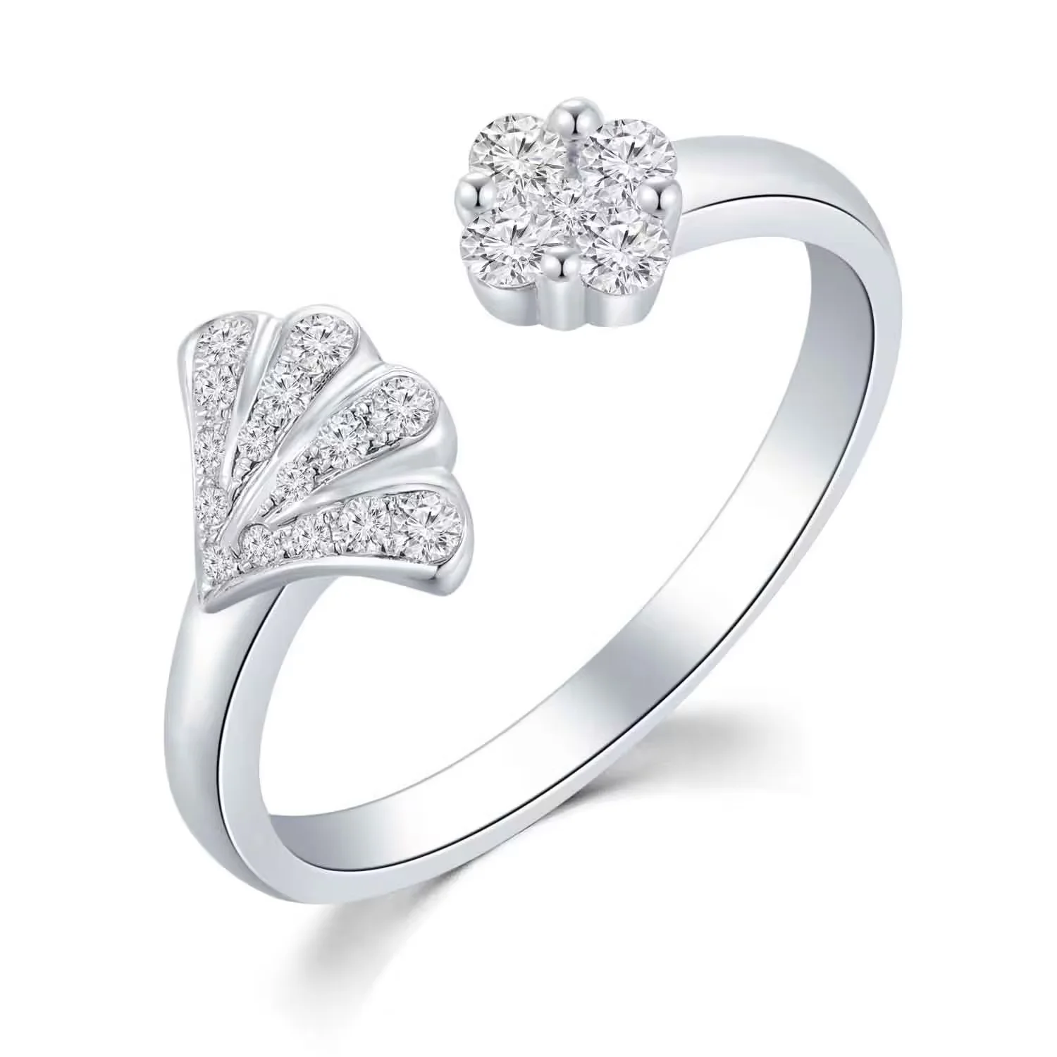 18K白金贝壳款钻石戒指(开口戒不可修改手寸)