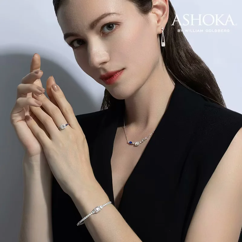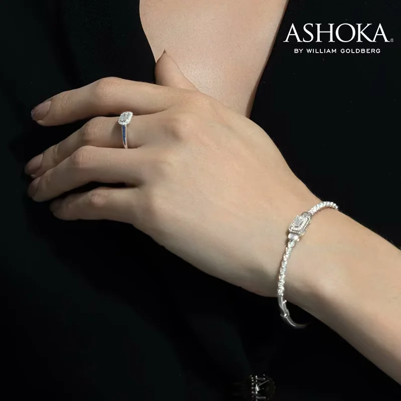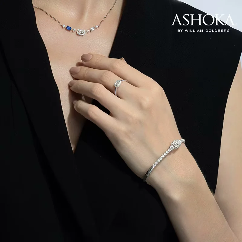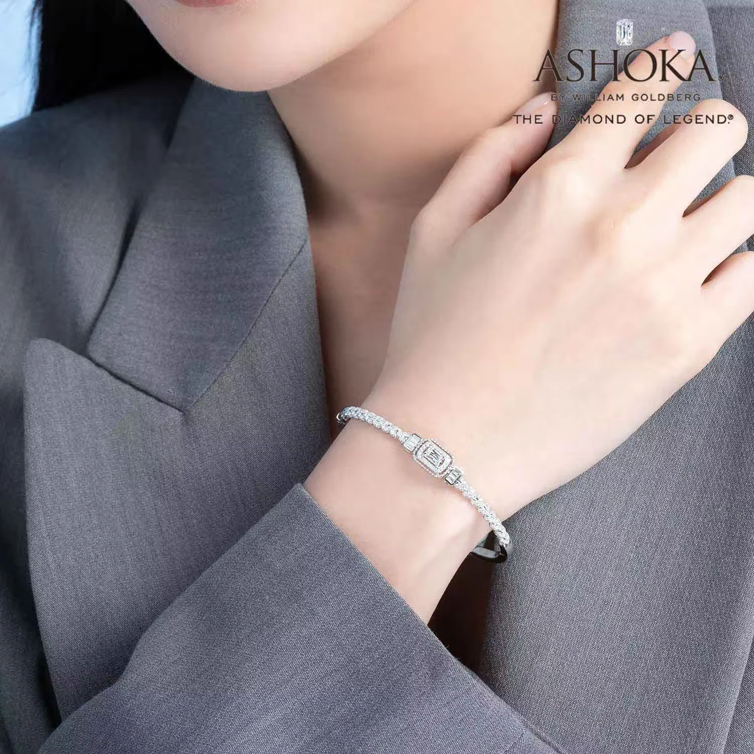 ASHOKADiamond 18K白金单颗粒长方形拼镶钻石手镯手寸55MM