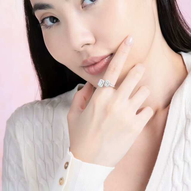 ASHOKADIAMOND《珍爱》系列 18K白金单颗粒群镶钻石戒指优雅气质