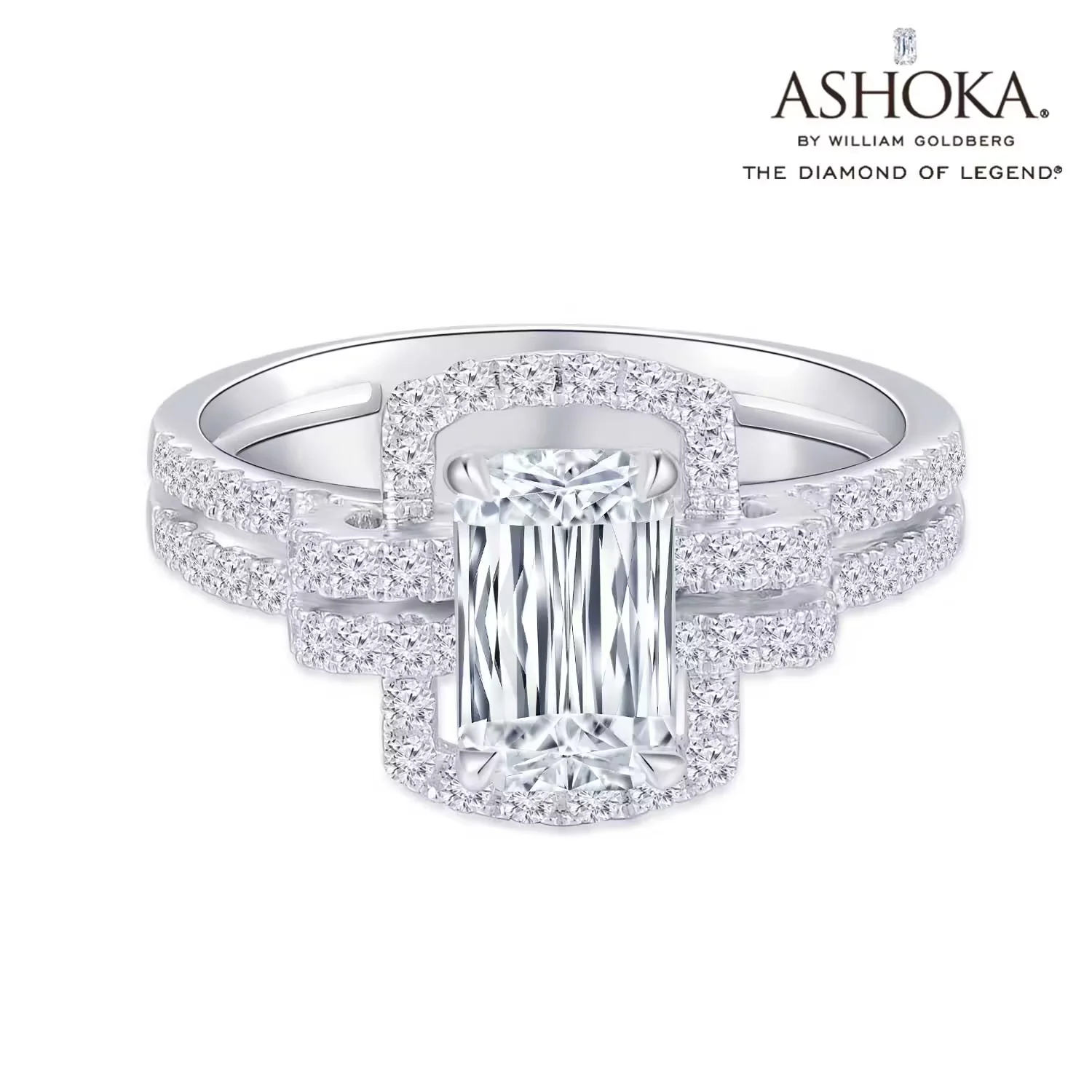 ASHOKADiamond 皇家系列 18K白金单颗粒群镶款钻石戒指手寸13号