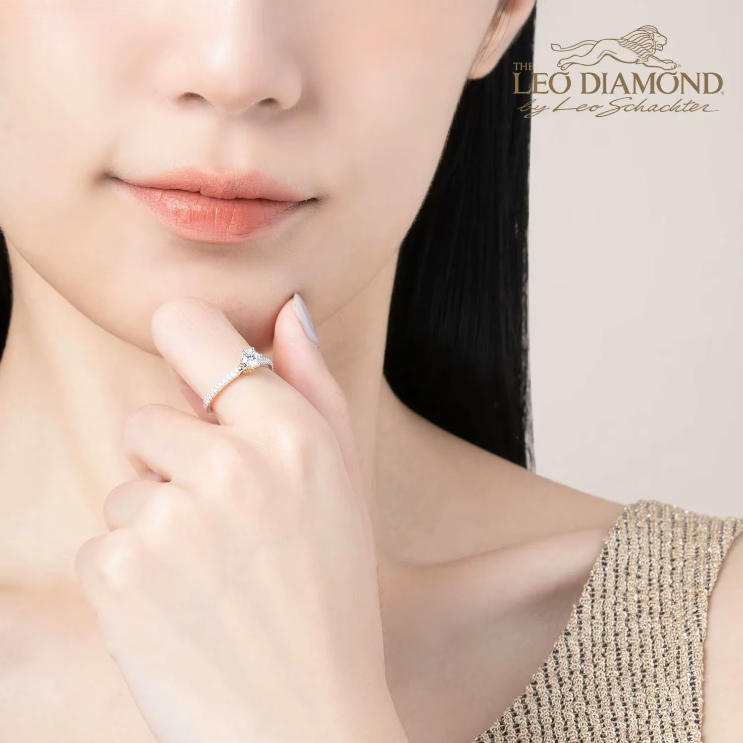 The Leo Diamond18K黄白金单颗粒求婚结婚钻石戒指手寸13号