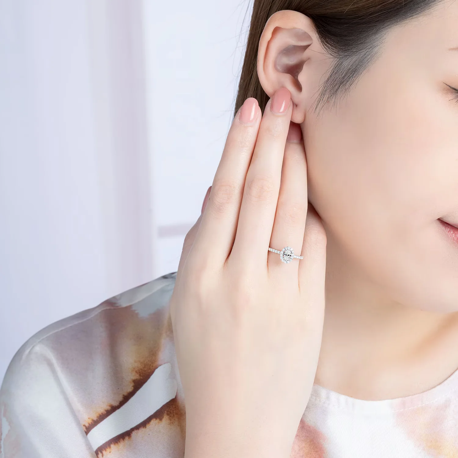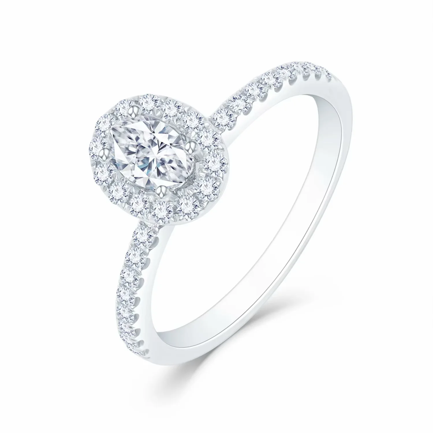 18K白金 单颗粒鸡蛋型群镶款钻石戒指手寸11号