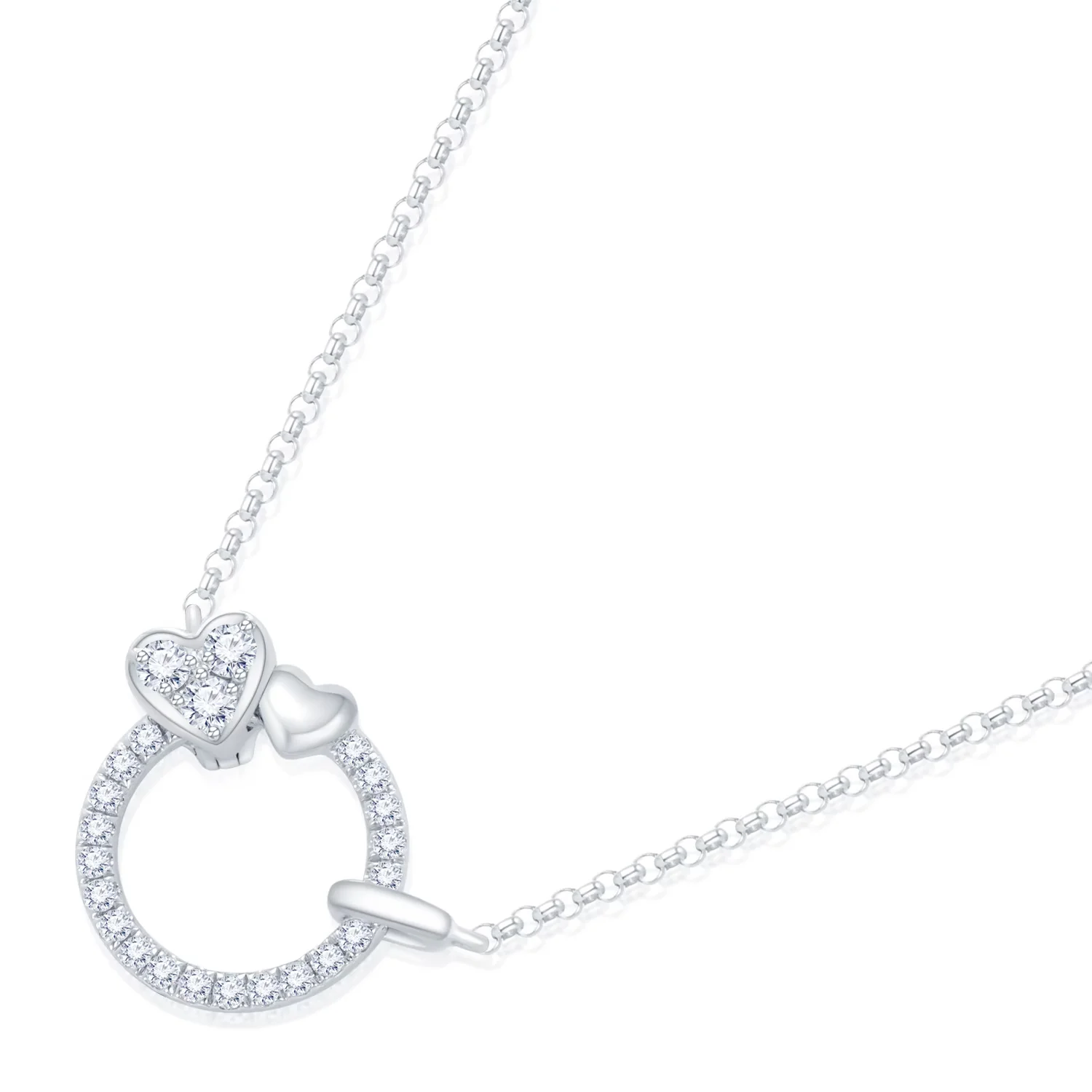18K白金爱心款钻石项链/颈链 爱心可移动 可调节链总长度44.5cm