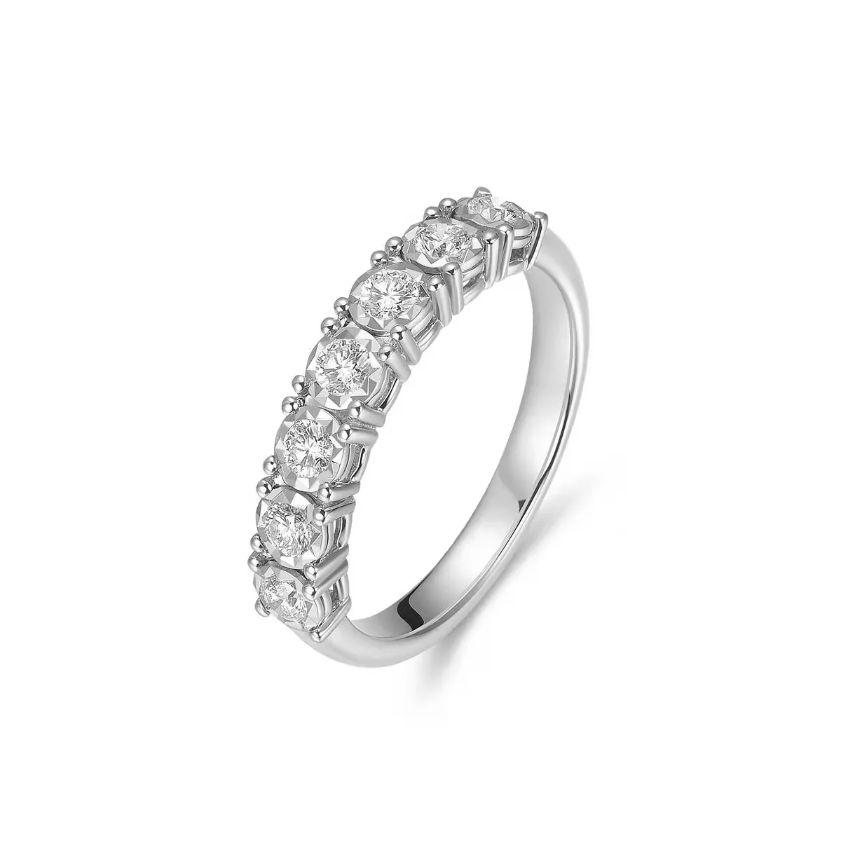 18K白金七颗粒排钻镶钻石戒指简约大方气质手寸11号/15号可选