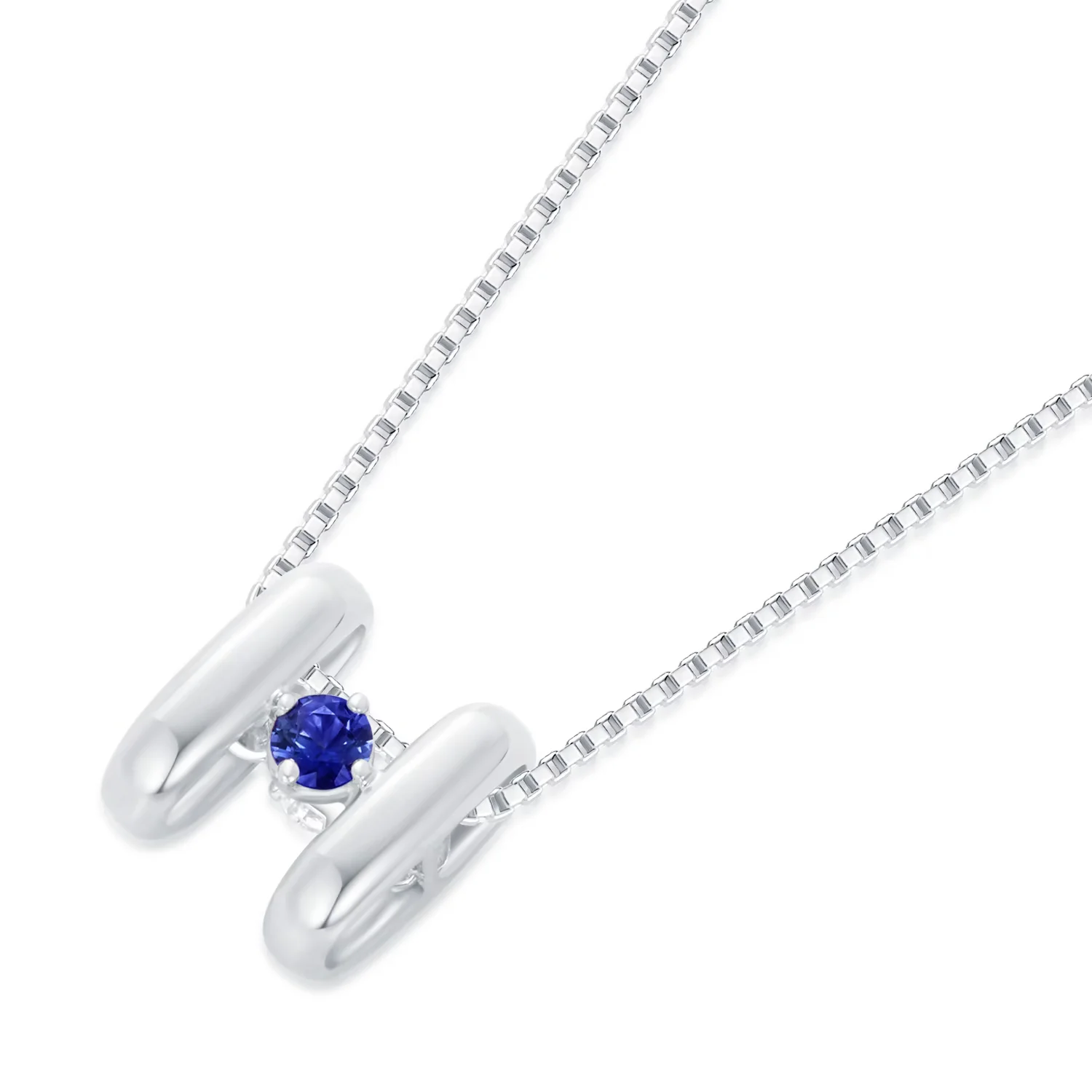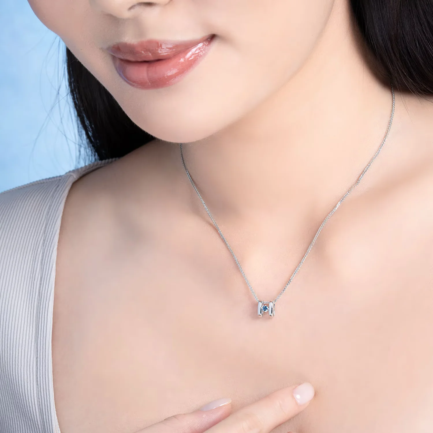 简约色调18K白金钻石/蓝宝石吊坠