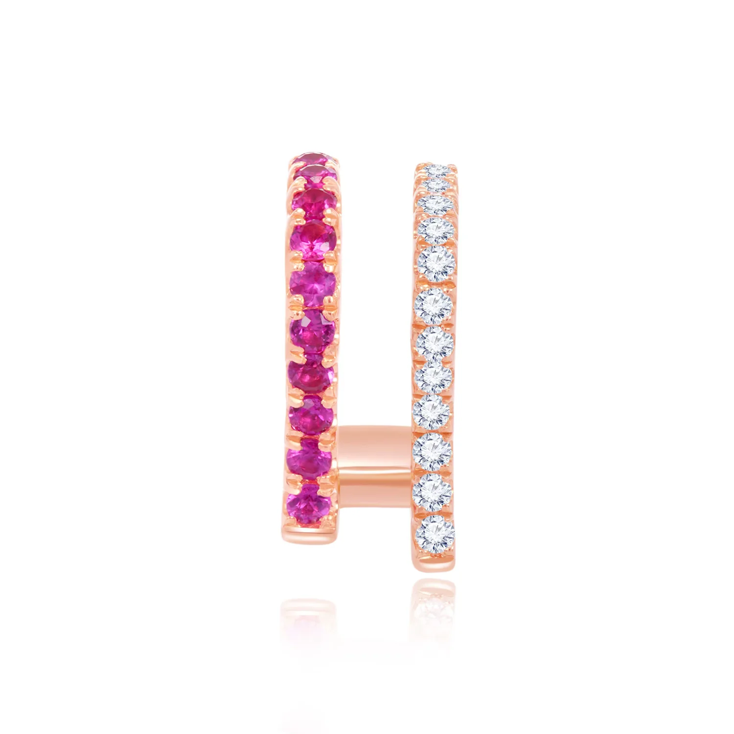 18K玫瑰金钻石/粉色蓝宝石单边耳钉