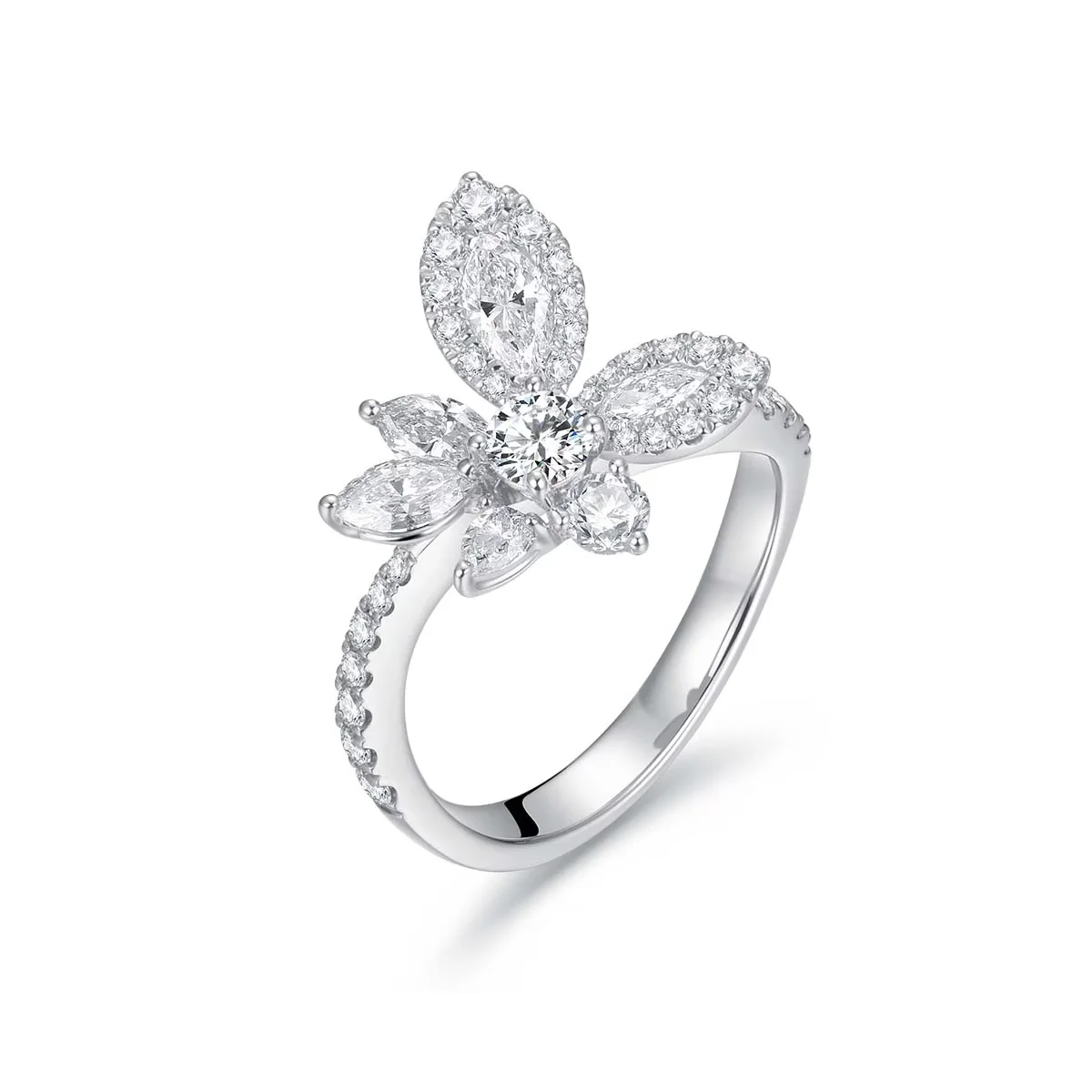 18K白金榄尖形/梨形拼镶钻石戒指豪华蝴蝶款
