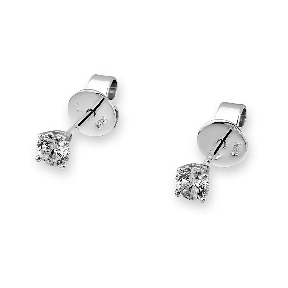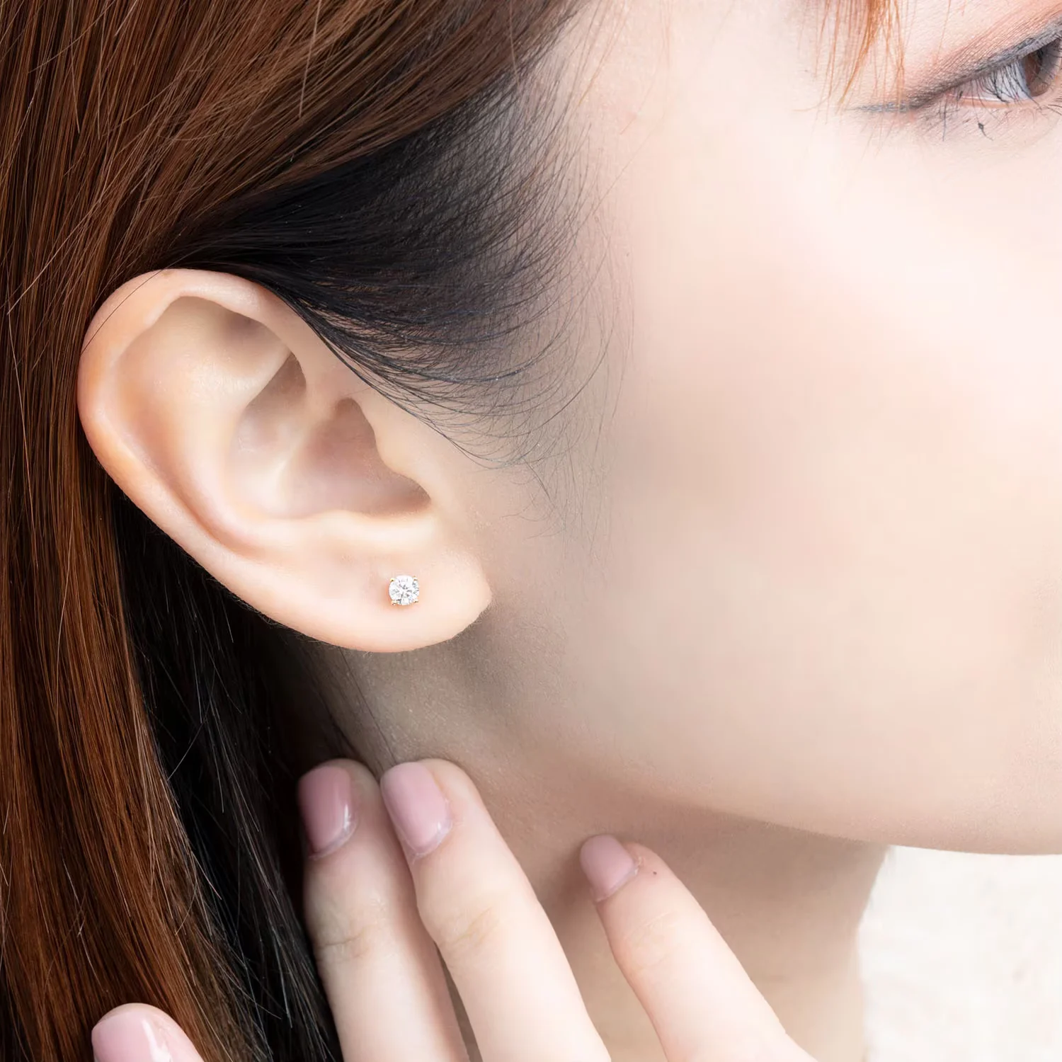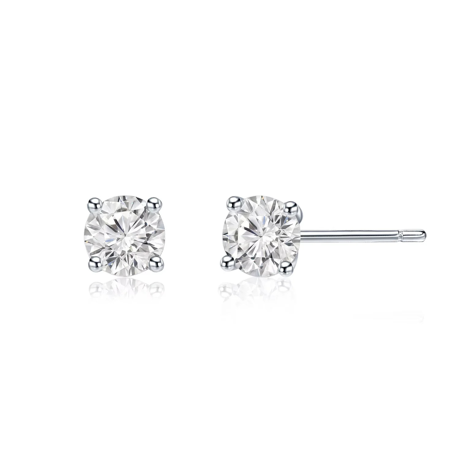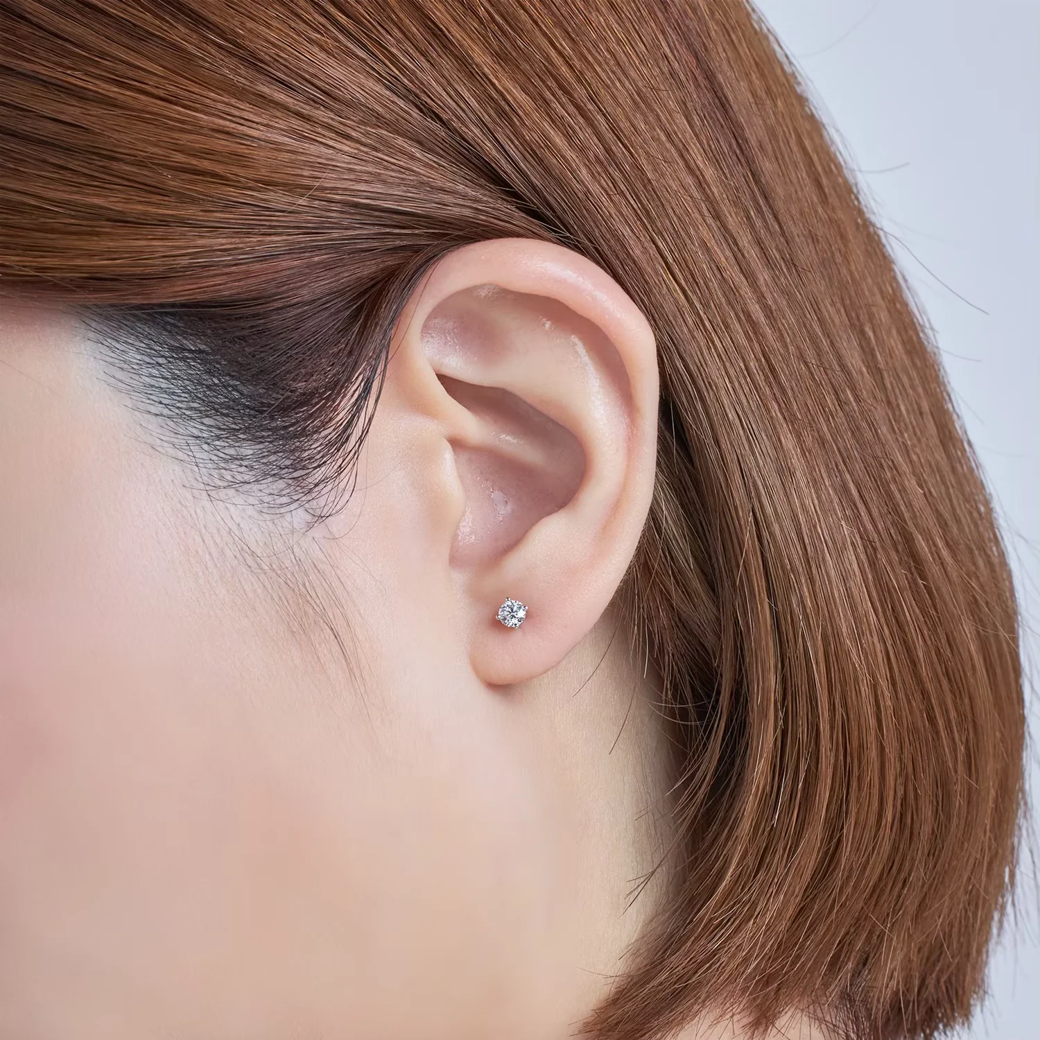 18K白金 单颗粒四爪镶钻石耳钉一对通勤款