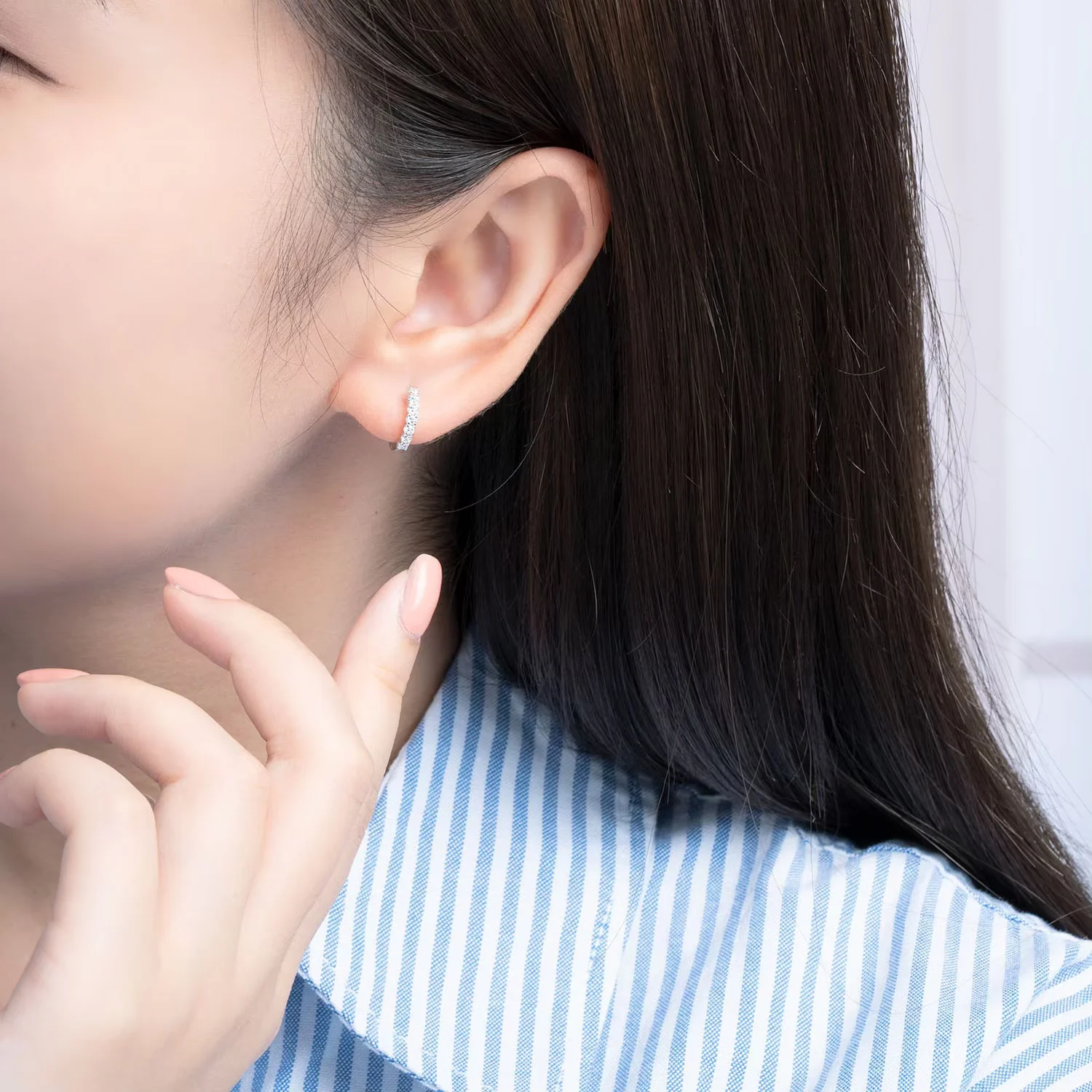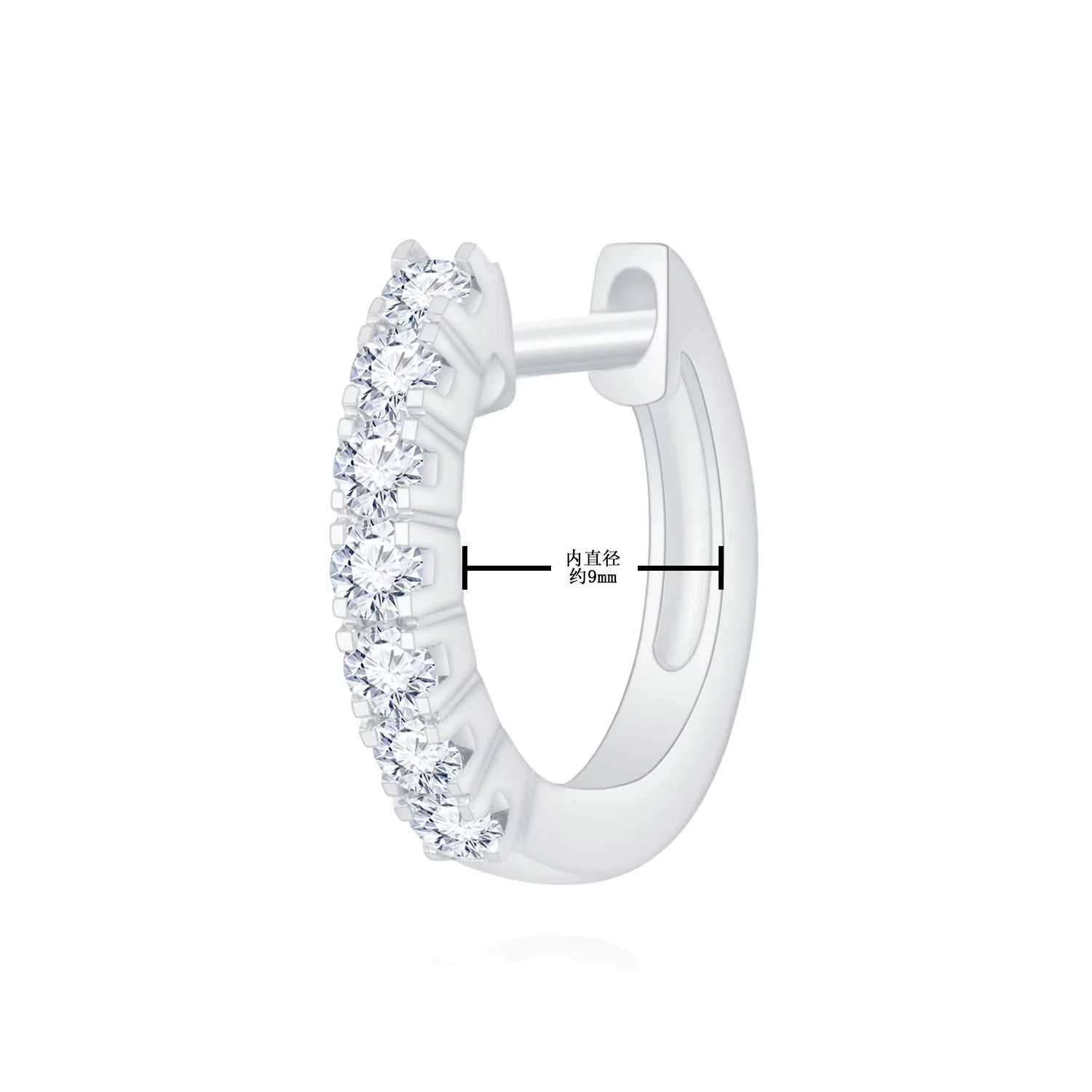 18K白金 七颗粒排钻圈式款钻石单边耳环(单只)