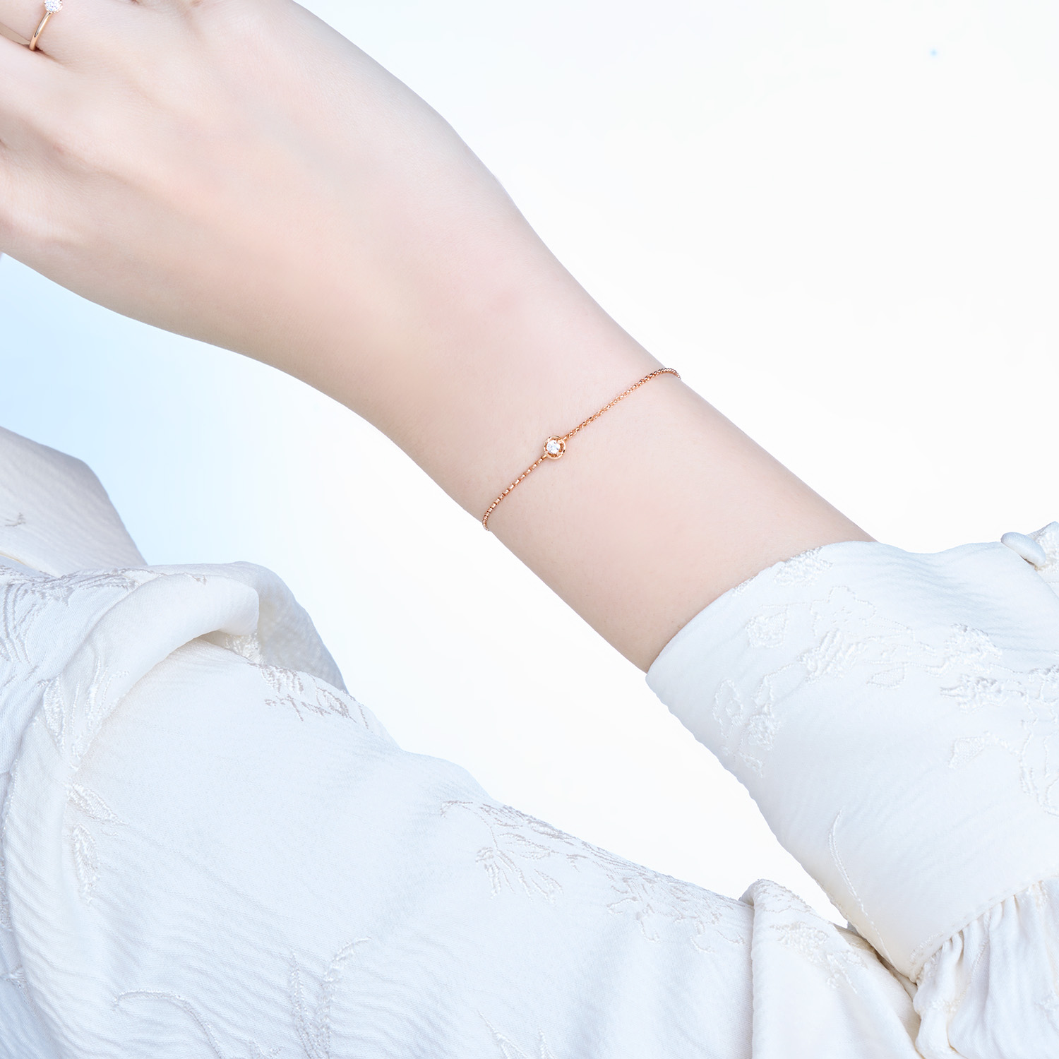 18K玫瑰金 单颗粒小清新钻石手链 长度19.5CM