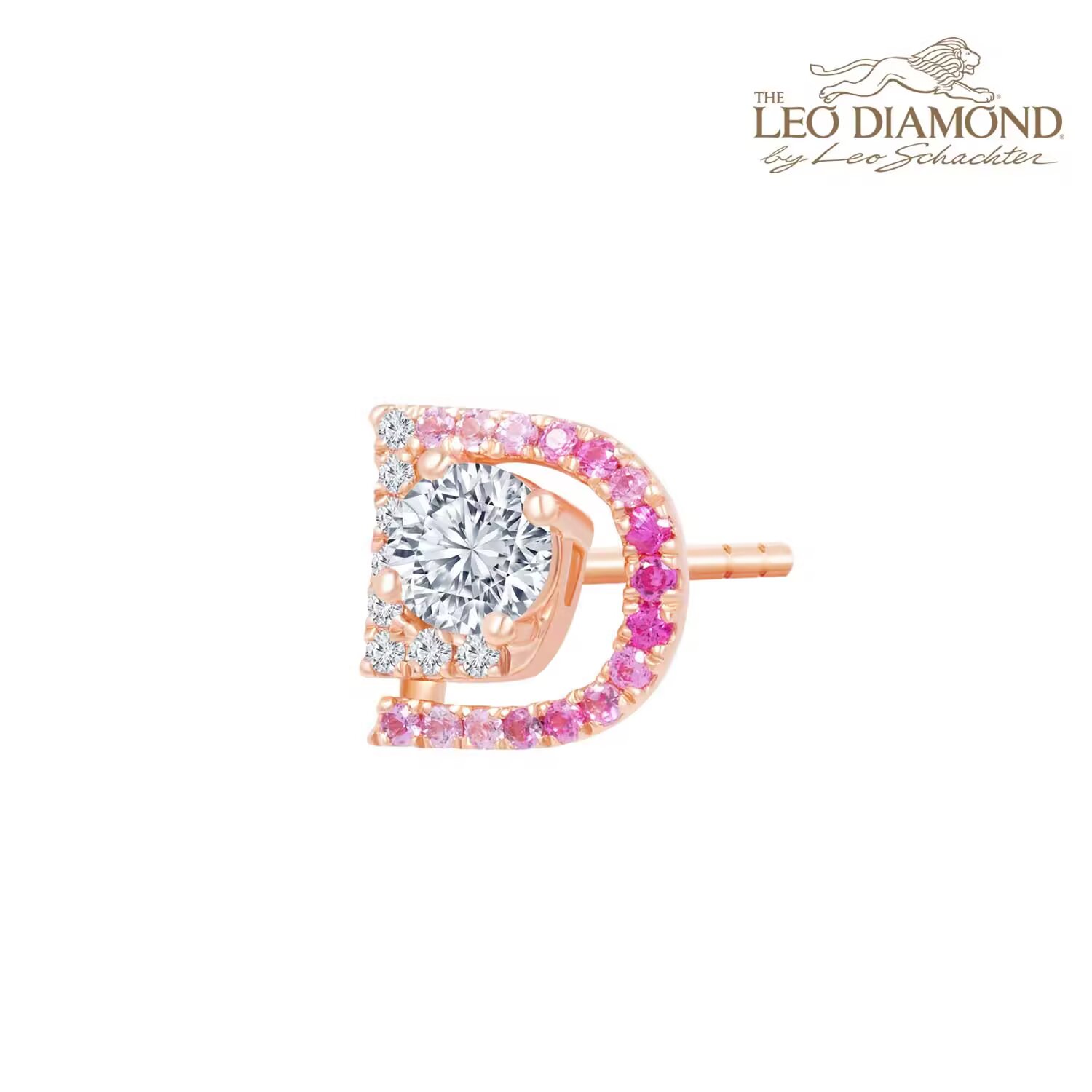 The Leo Diamond 「D Series」 18K玫瑰金钻石/粉色蓝宝石单边耳钉