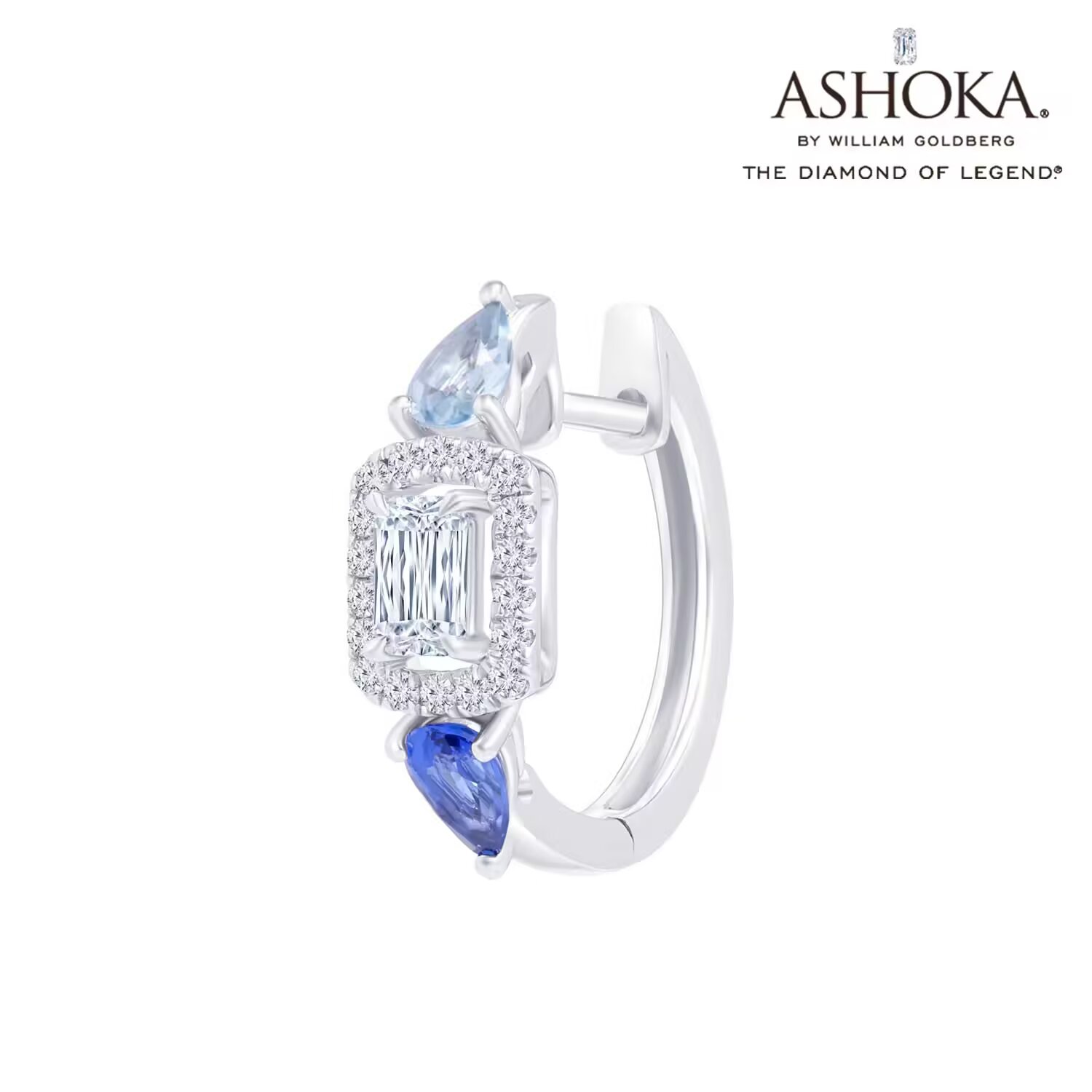 ASHOKADiamond《Breeze》18K白金钻石/蓝宝石/海蓝宝单边耳钉