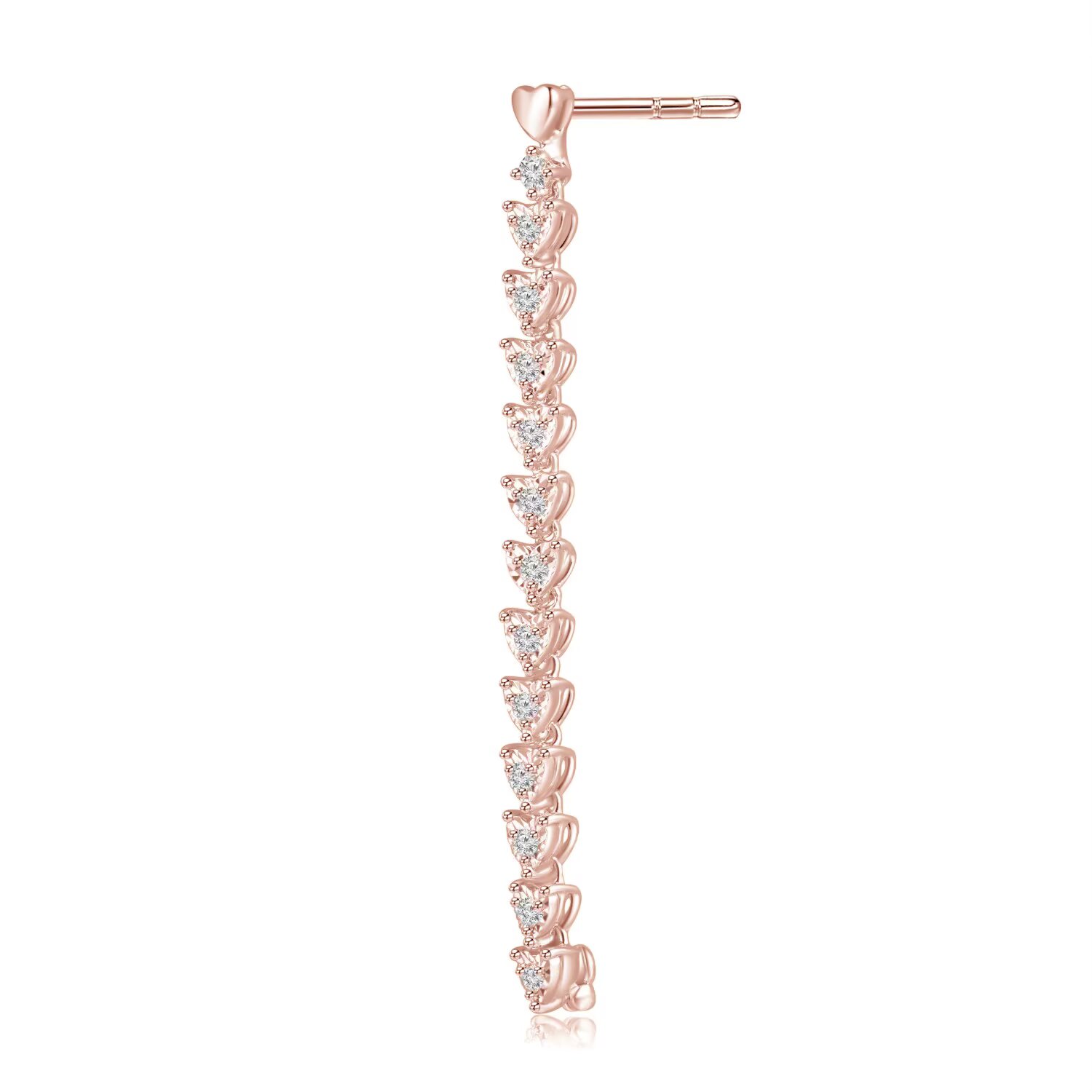 18K玫瑰金排钻长款流线型钻石单边耳钉(单只)一款两戴