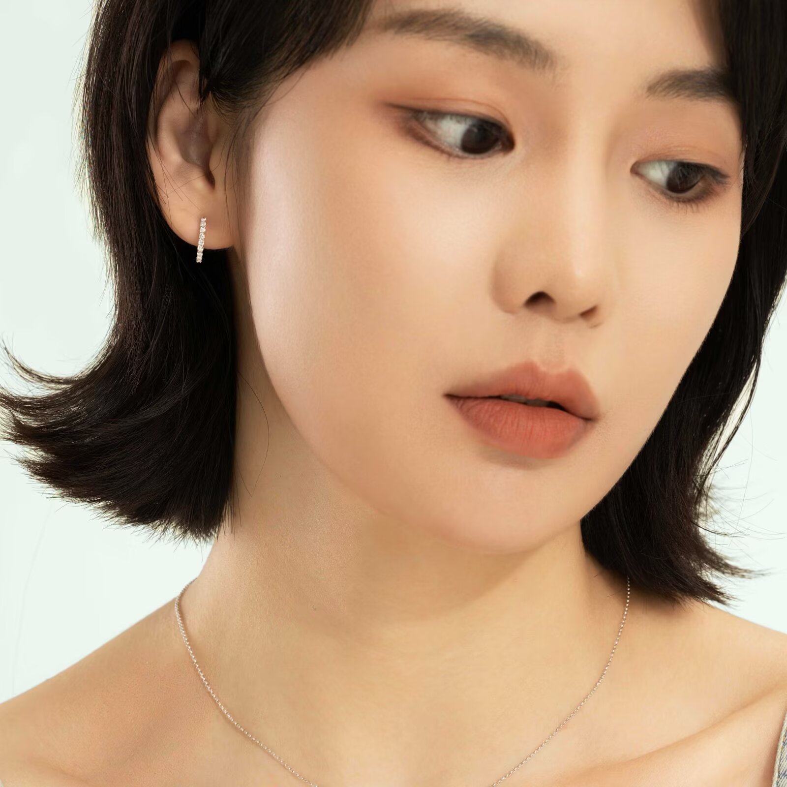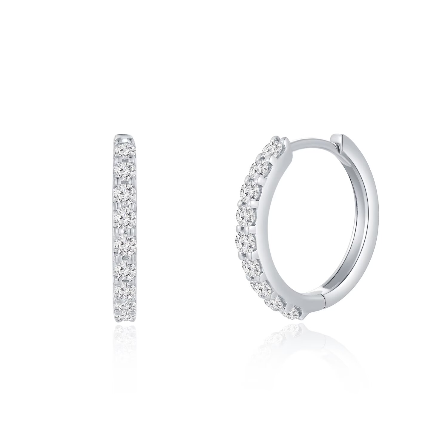 18K白金/玫瑰金单排排钻圈式钻石耳钉 经典通勤款