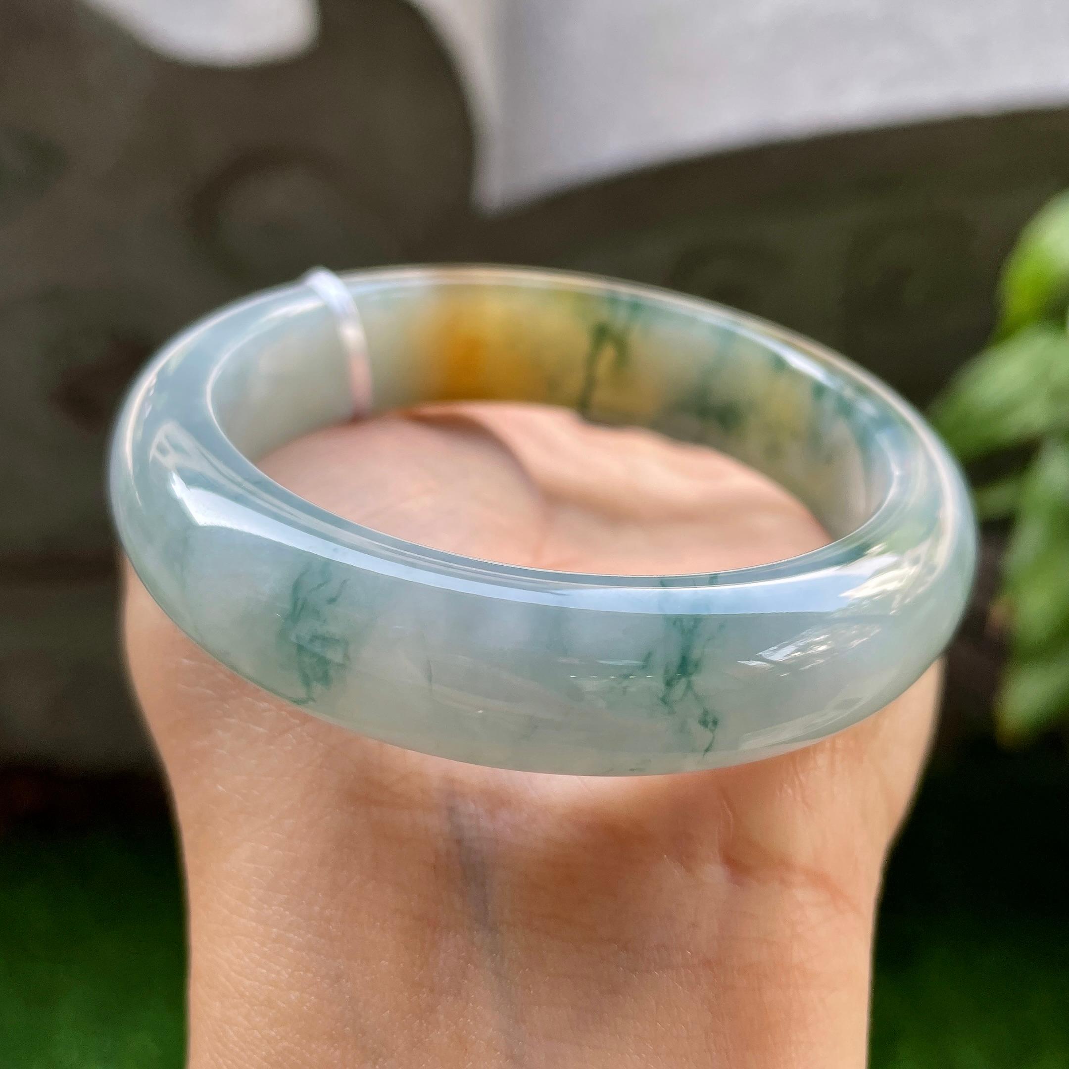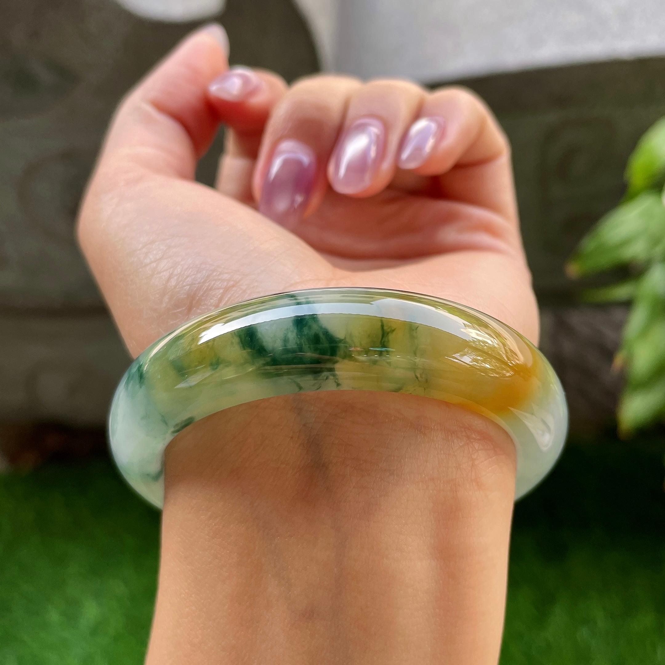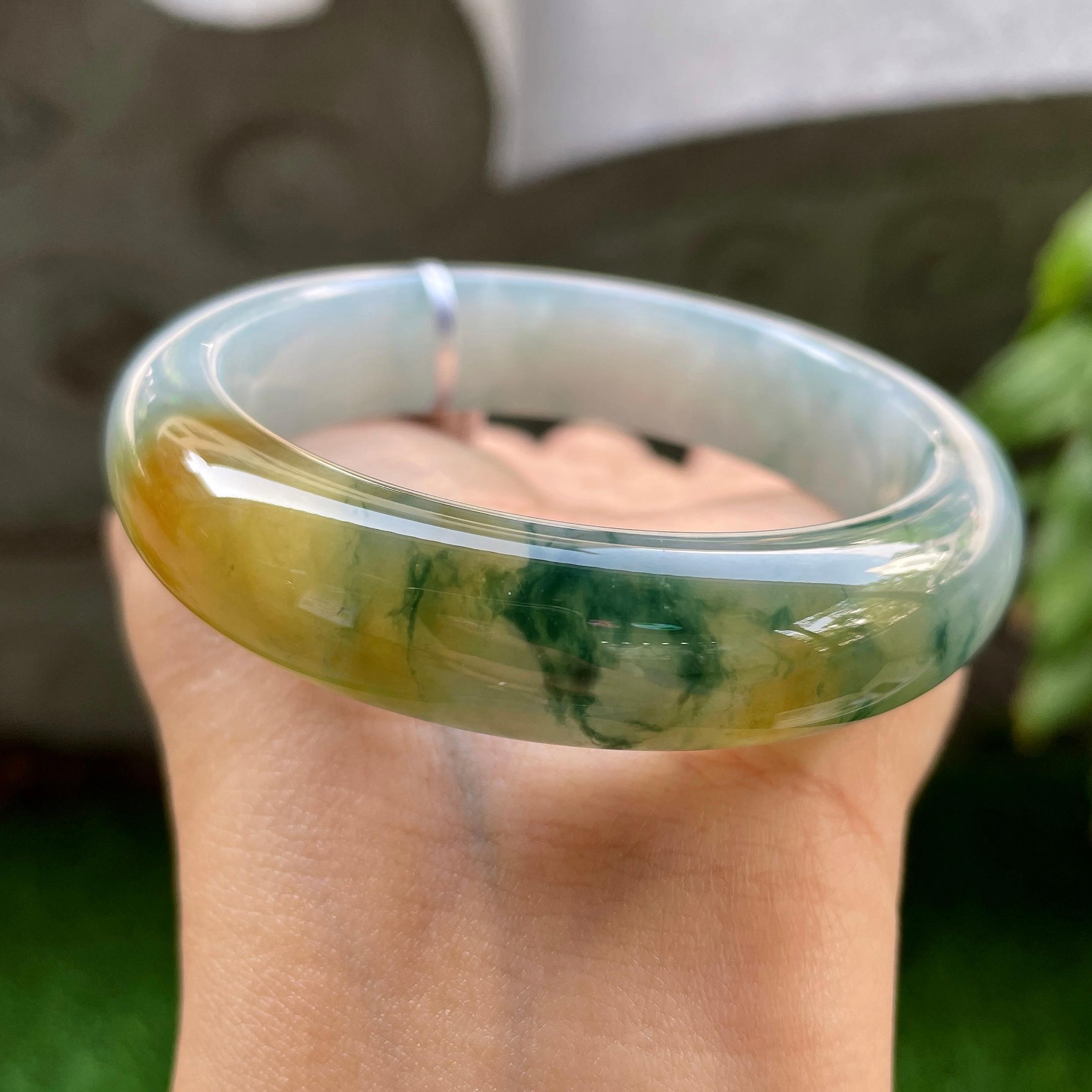 细糯种黄加绿飘蓝花正圈平安镯55圈口 天然缅甸A货翡翠 商品货号:yc321398