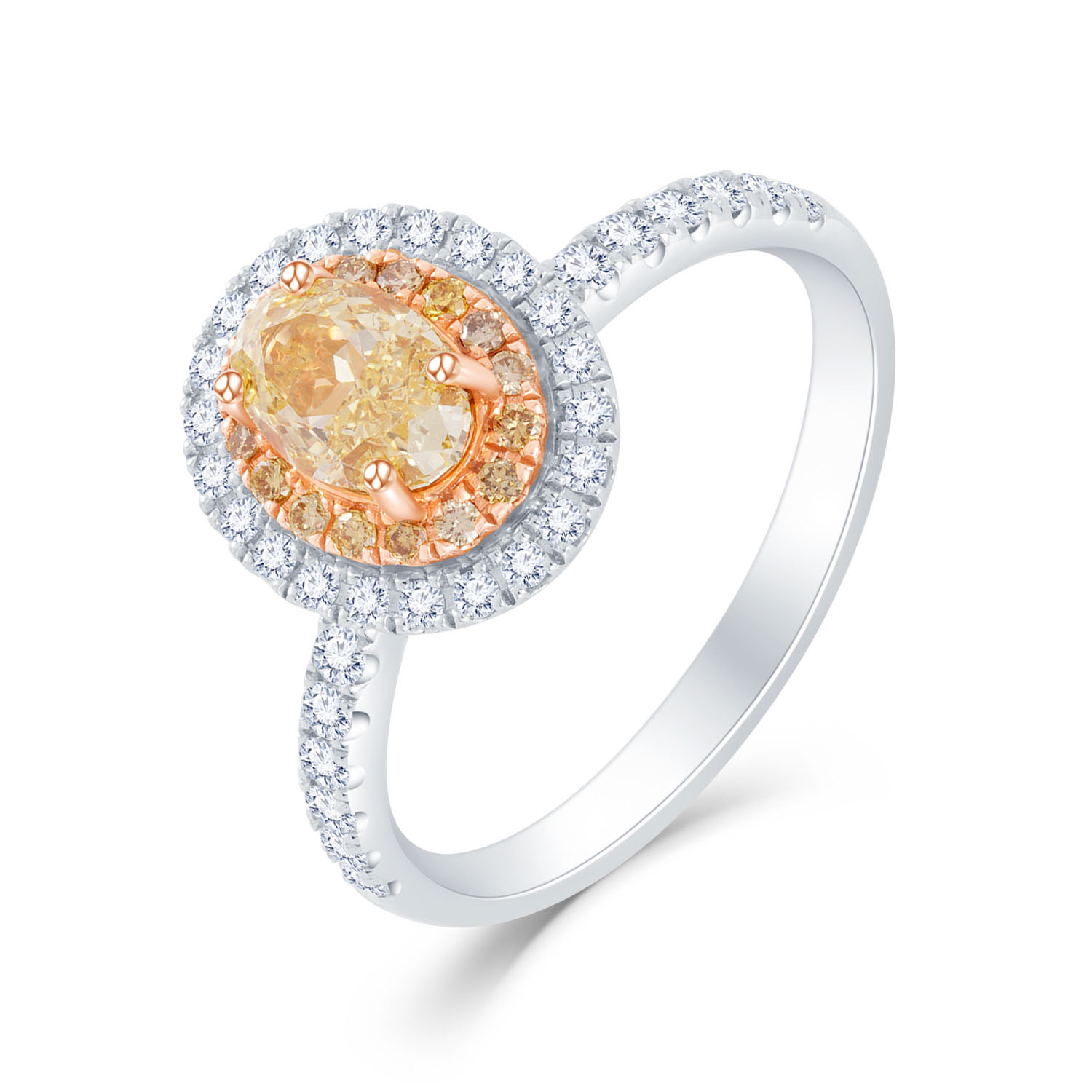 18K黄白金 单颗粒鸡蛋型黄钻豪华款钻石戒指IGI证书 手寸14号