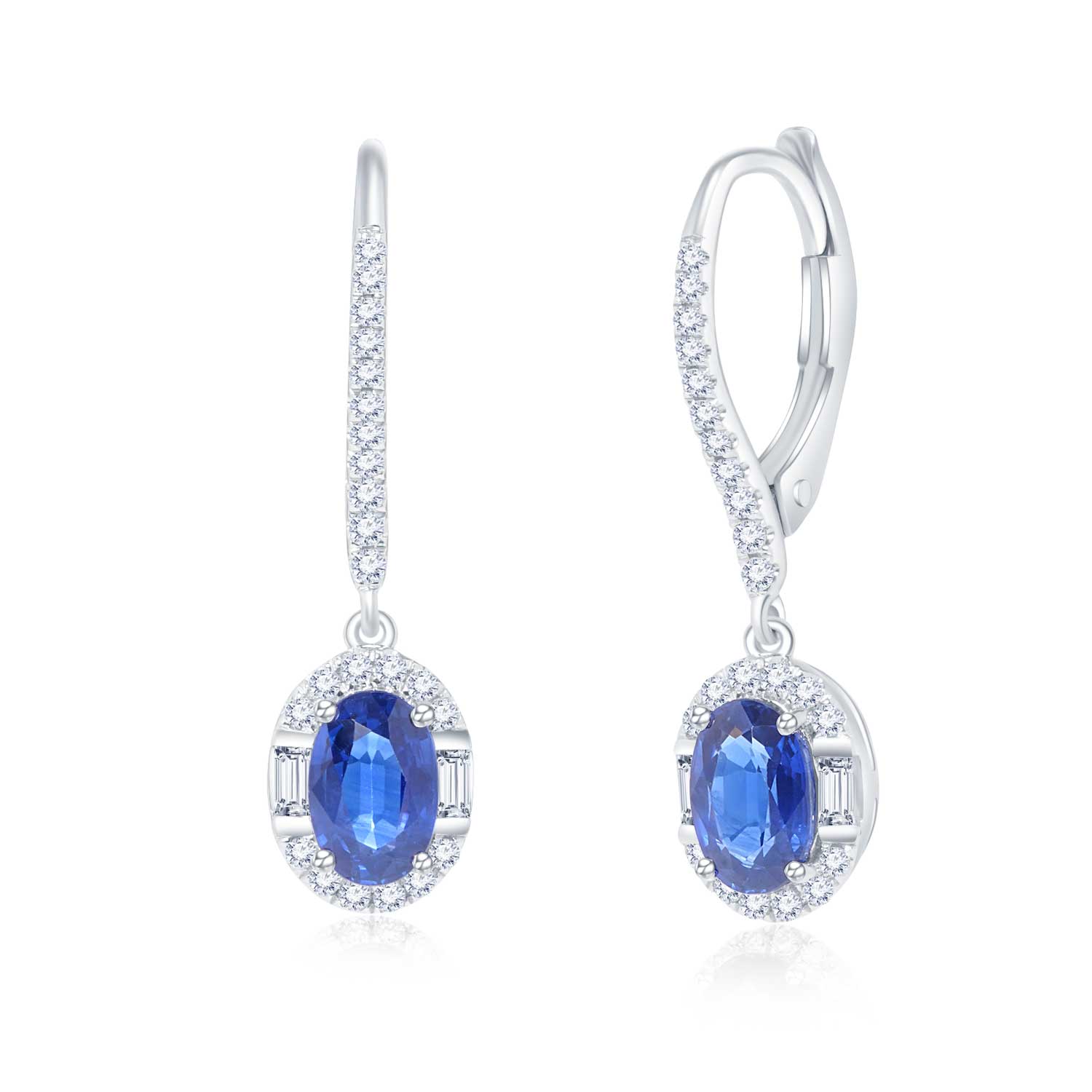 18K白金 鹅蛋型蓝宝石拼镶钻石耳环优雅气质