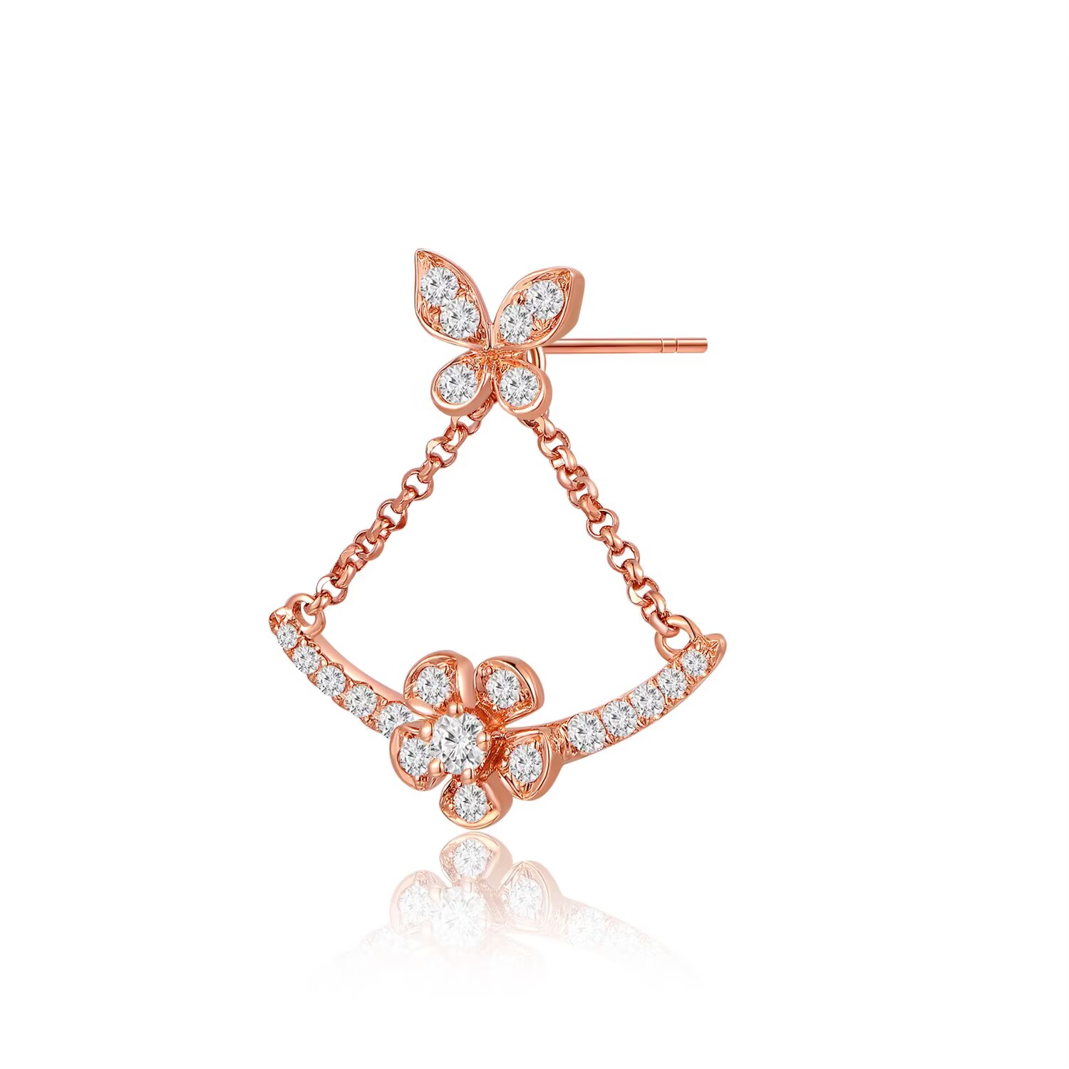蝶恋芳菲系列 18K玫瑰金蝴蝶款钻石单边耳钉 可拆分两戴