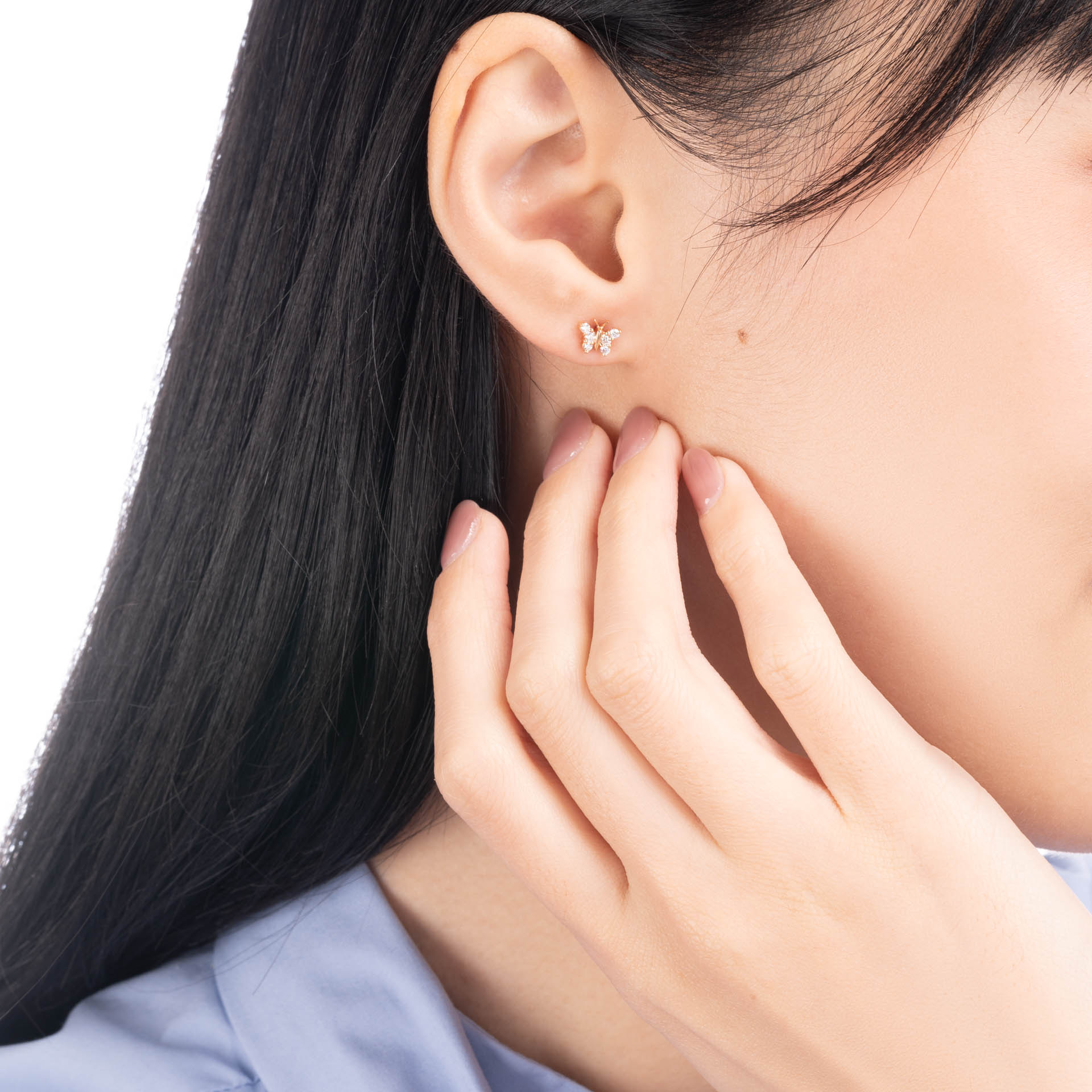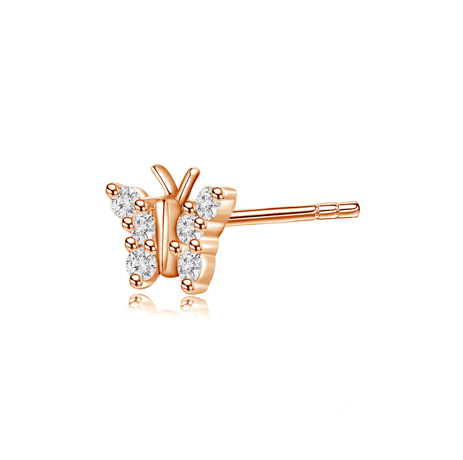 蝶恋芳菲18K白金/玫瑰金蝴蝶款钻石单边耳钉(单只)