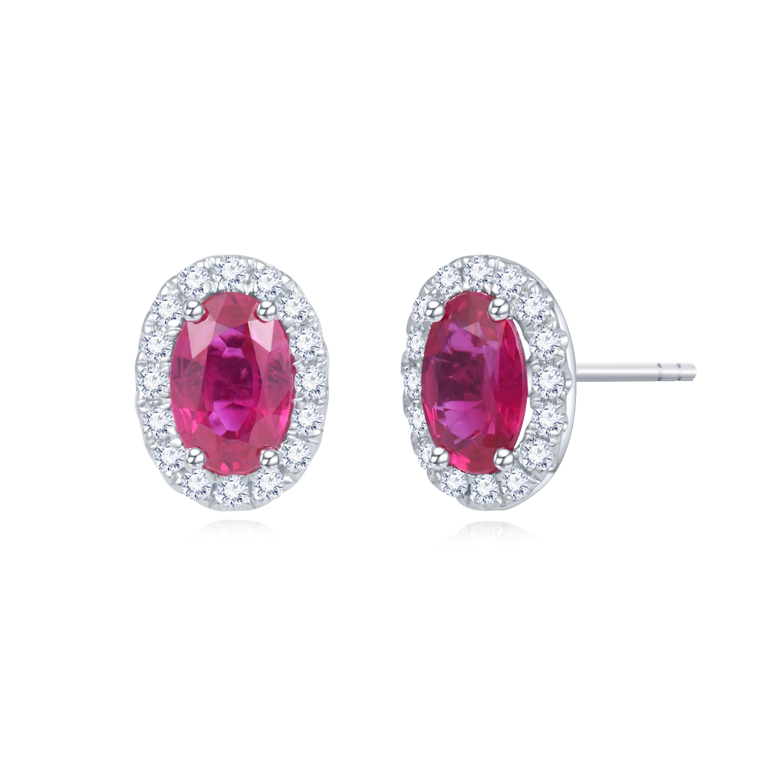 18K白金 单颗粒红宝石拼镶钻石耳钉