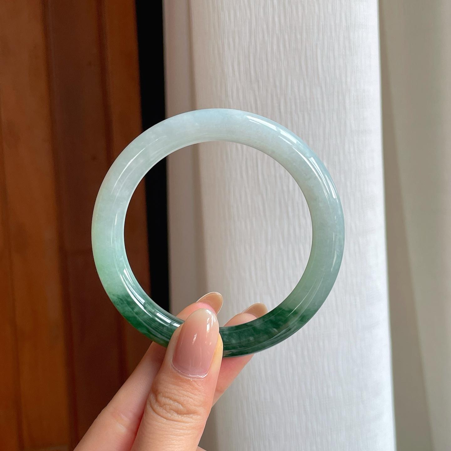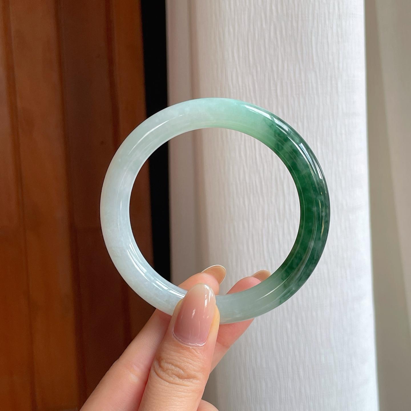 糯冰飘花翡翠圆条手镯(56.3mm) 货号:yc373885